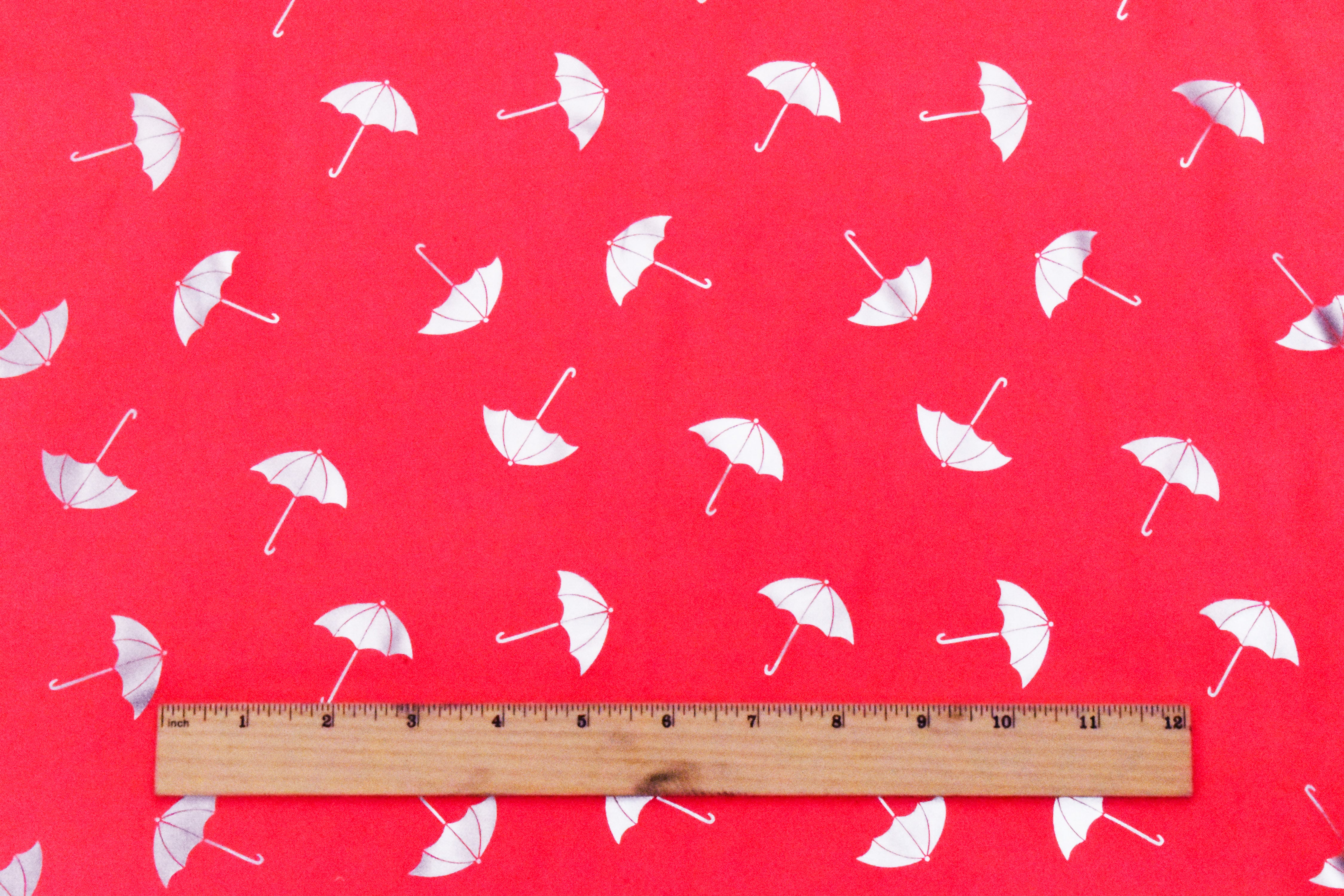 Caral Red-Silver Umbrella Foil Printed Polyester Chiffon Woven Fabric