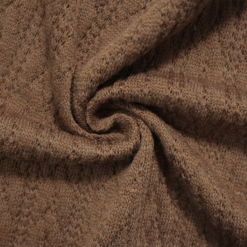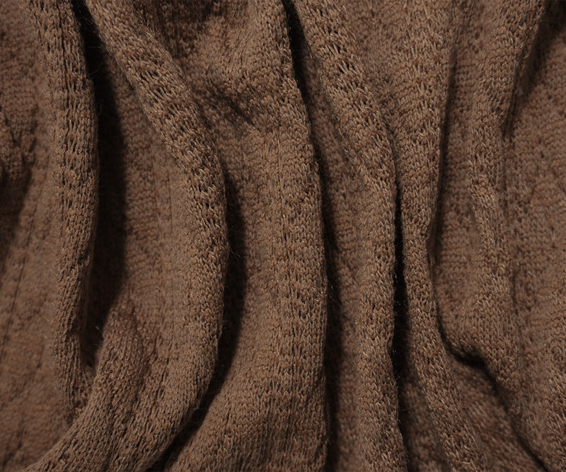 Cream Brown Poly Cable Sweater Knit Fabric