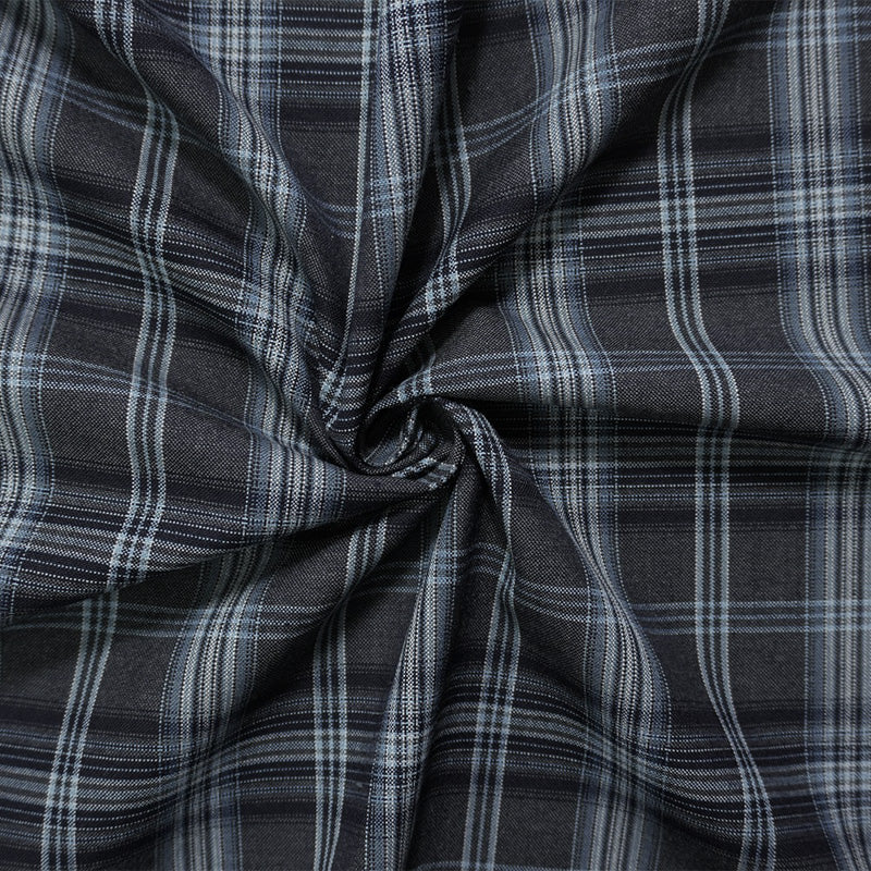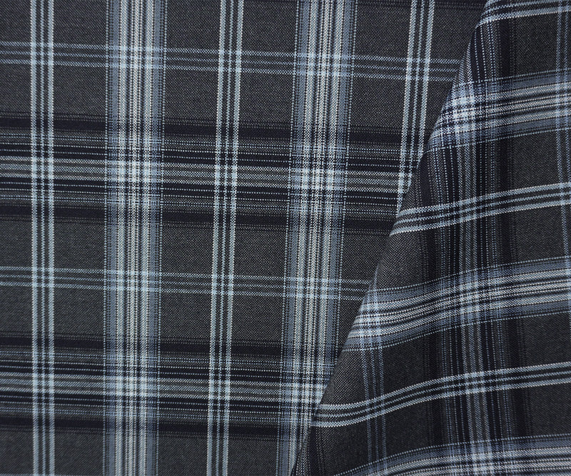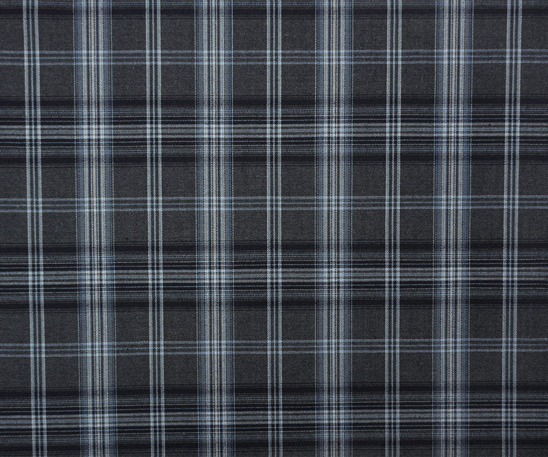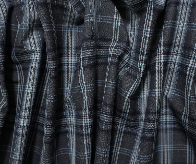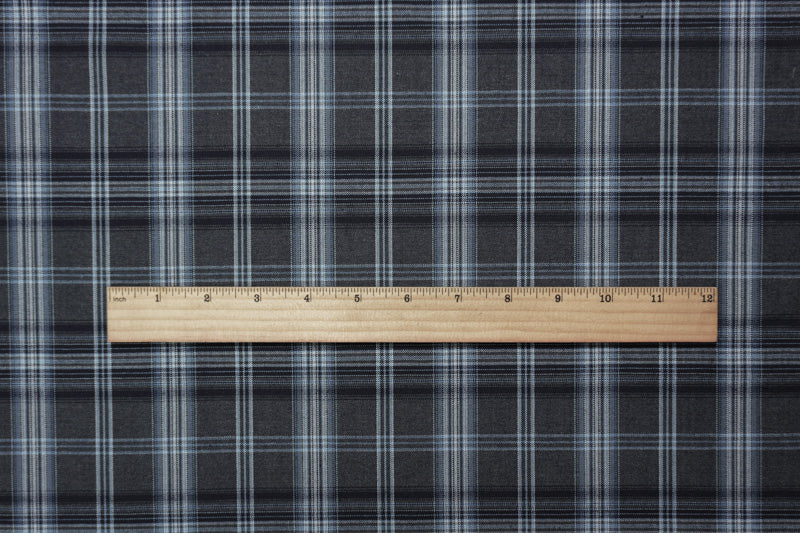 Gray-Blue-Multi Poly-Wool Plaid Woven Shirting Fabric