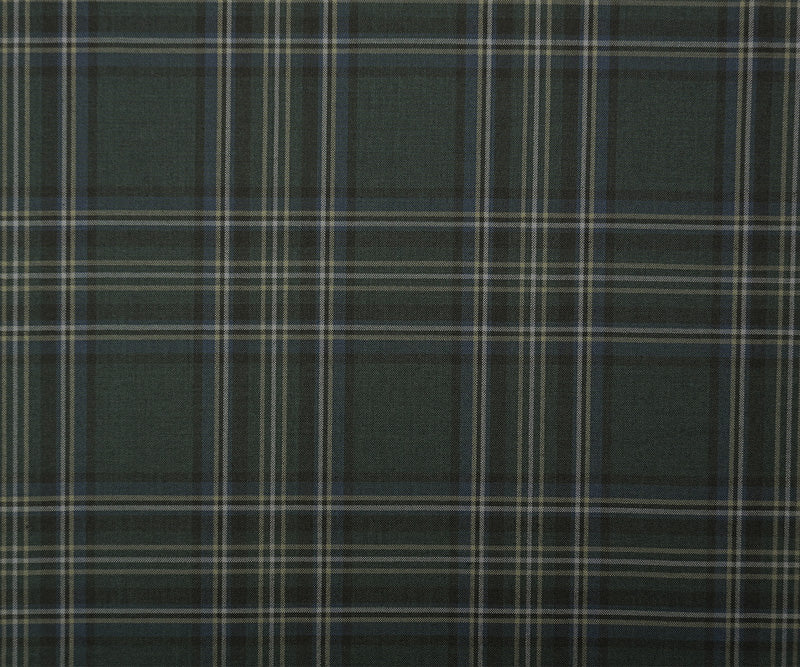 Green-Multi Poly Wool Plaid-Check Japanese Woven Shirting Fabric