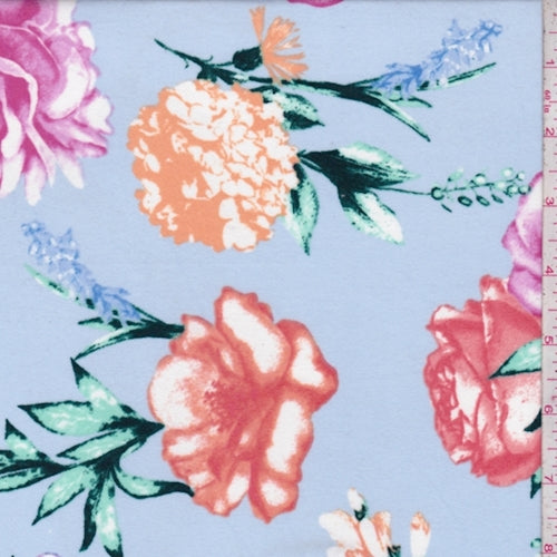 Lilac Blue/Salmon/Orchid Floral Double Brushed Jersey Knit Fabric