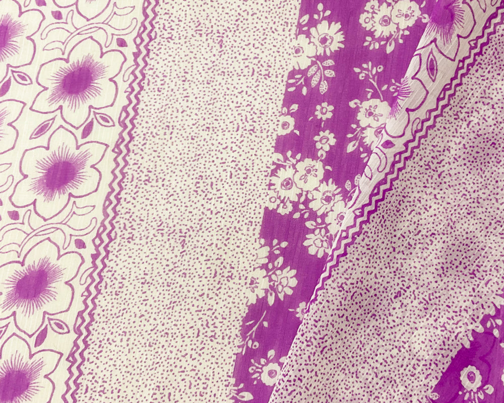 Purple-White Poly Floral Printed Yoryu Chiffon Woven Fabric