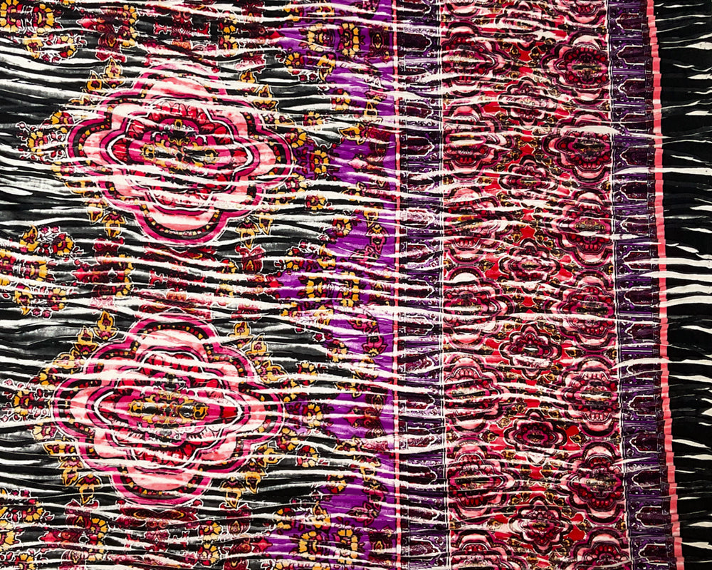 Red-Black-Multi Poly Medallion Border Printed Knife Pleat Knit Fabric