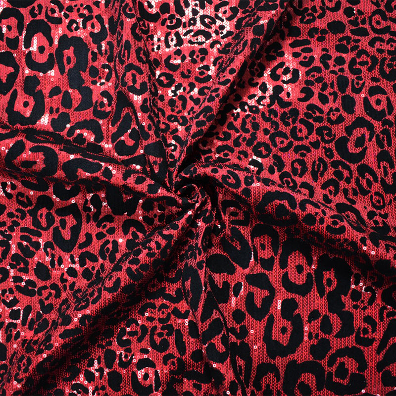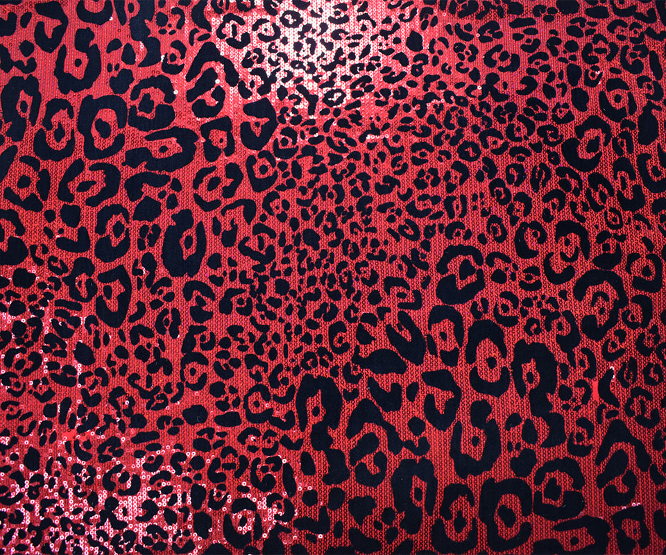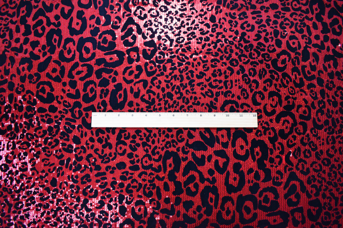Red-Black Poly Velvet Flock Cheetah Print Sequin Stretch Knit Fabric