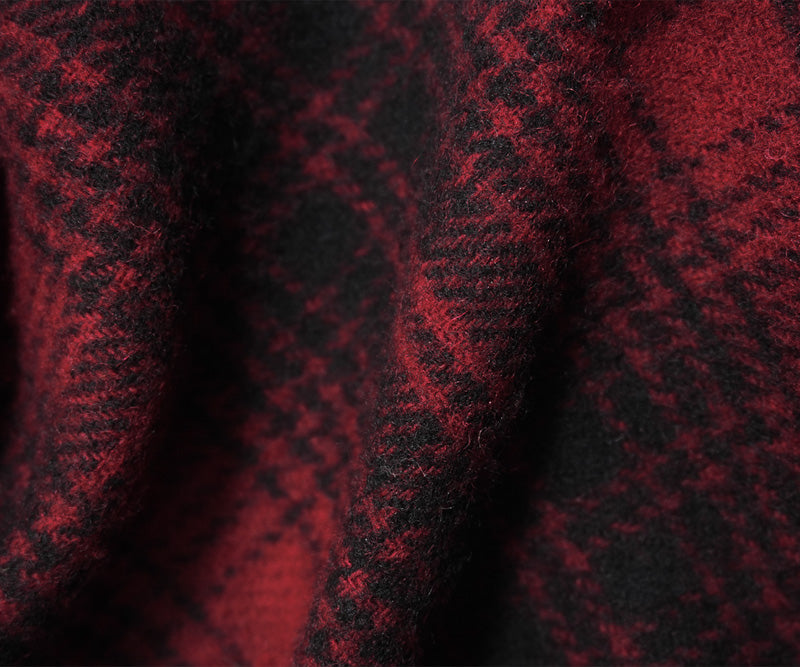 Red-Black Wool Plaid Double Brushed Twill Woven Jacketing Fabric