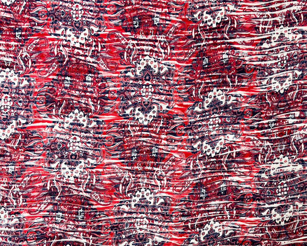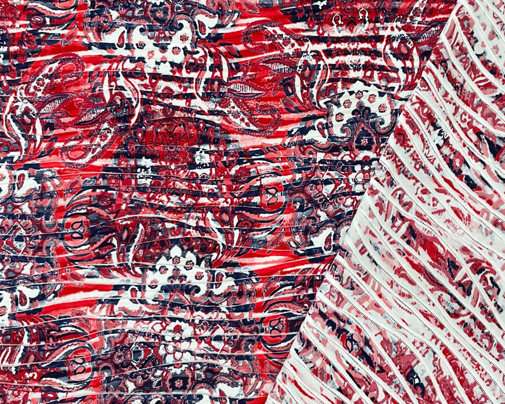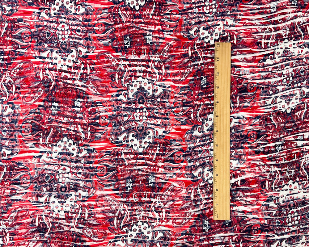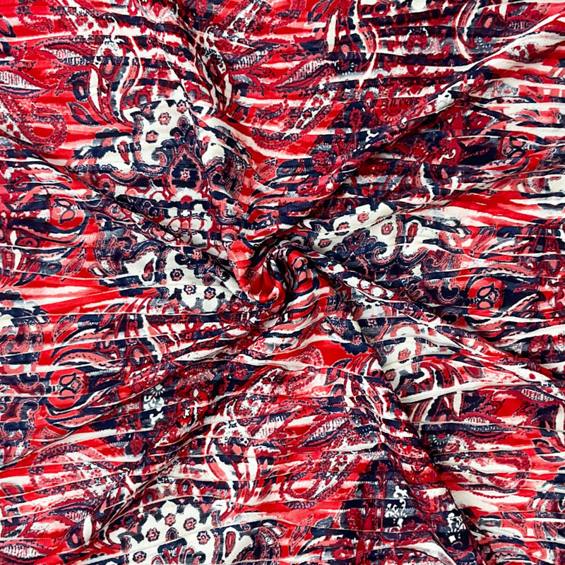 Red-Multi Poly Paisley Baroque Printed Knife Pleat Knit Fabric