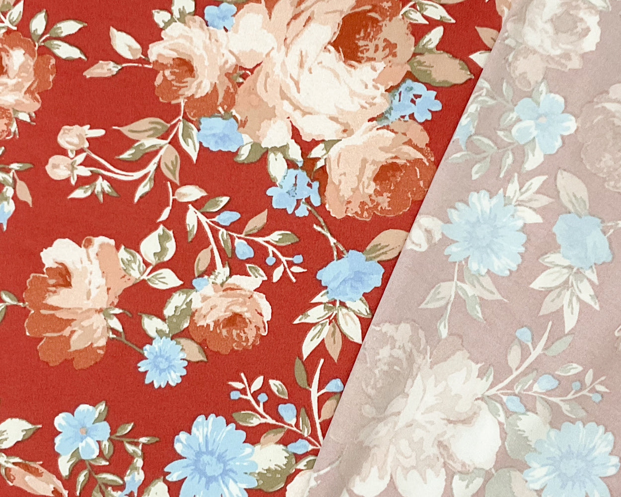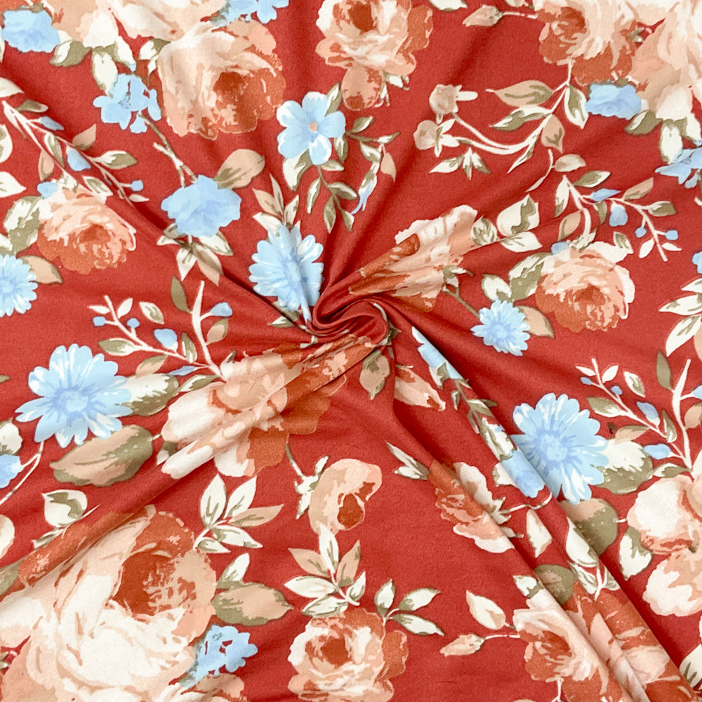 Red-Multi Poly Stretch Spandex Floral Print DB Jersey Knit Fabric