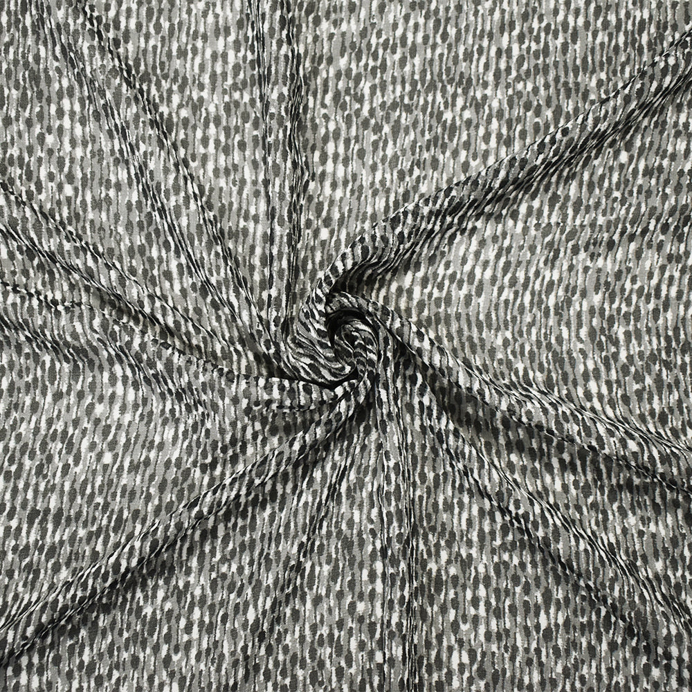 Black-Gray-Ivory Poly Abstract Spots Printed Chiffon Woven Fabric