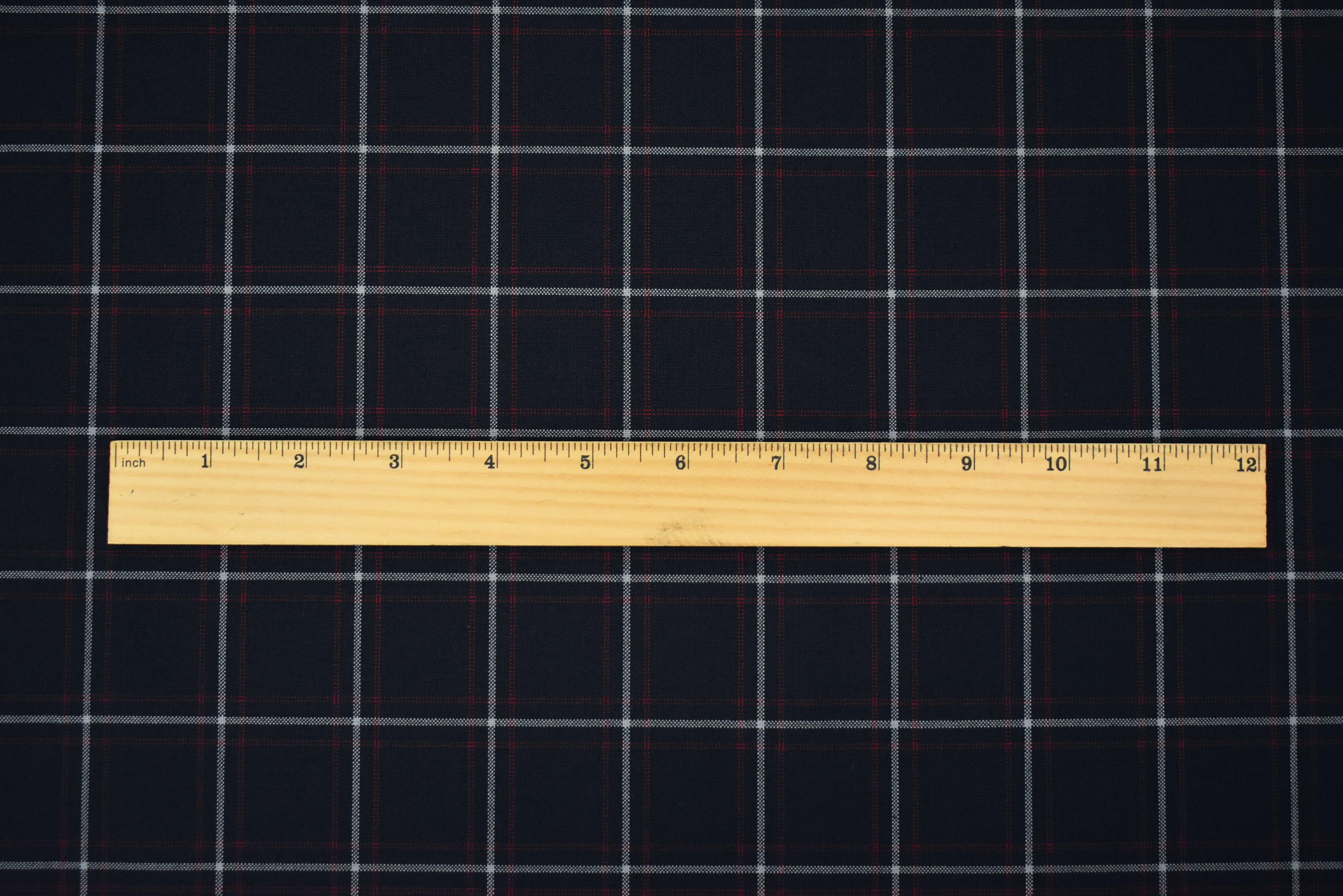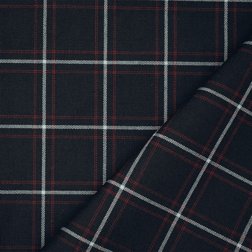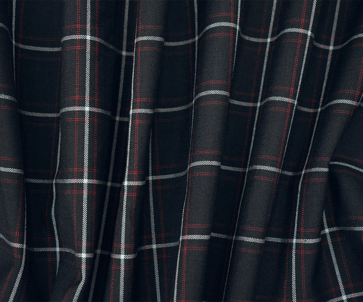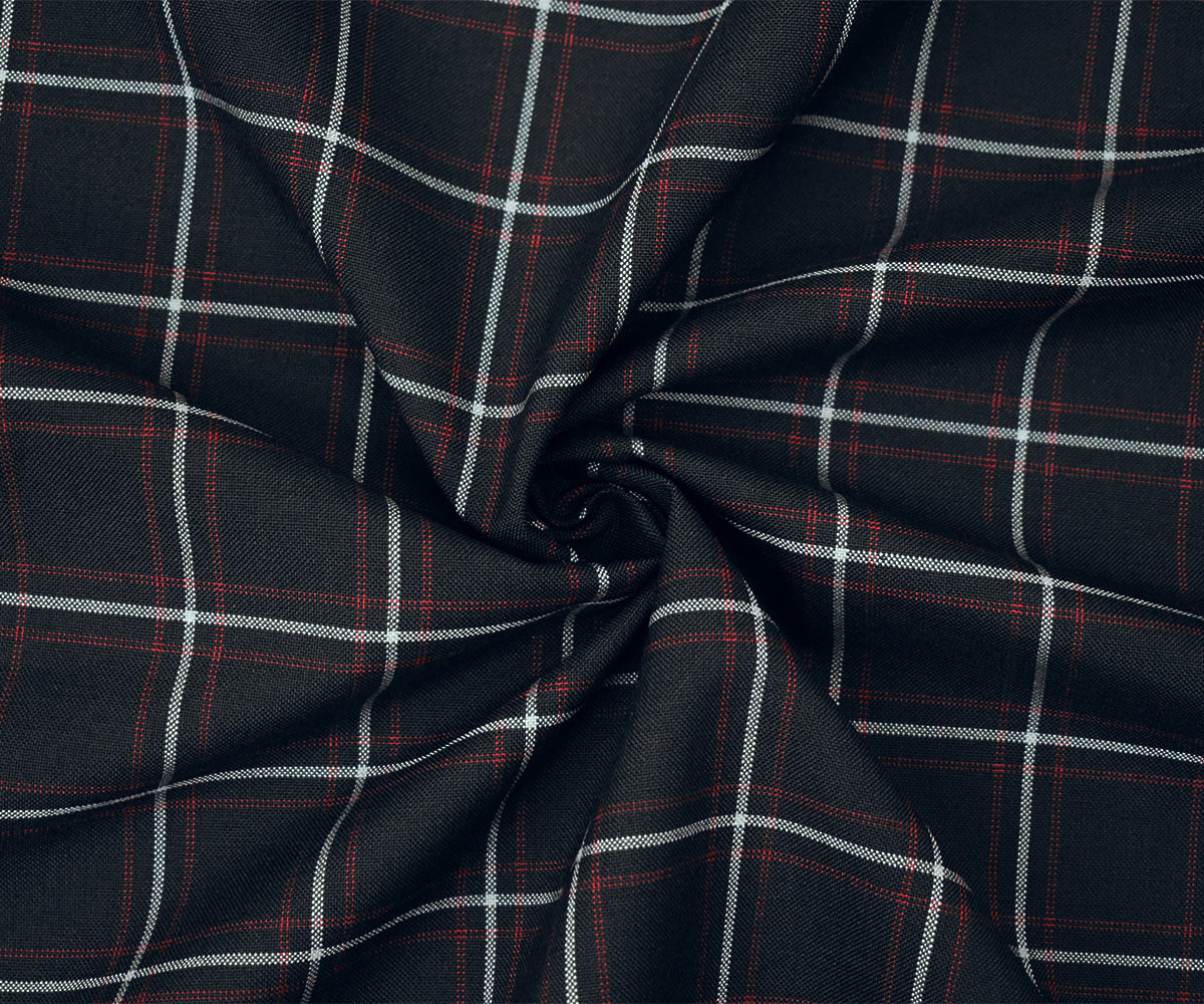 Black-Red-Gray Poly-Wool Plaid Shirting Woven Fabric