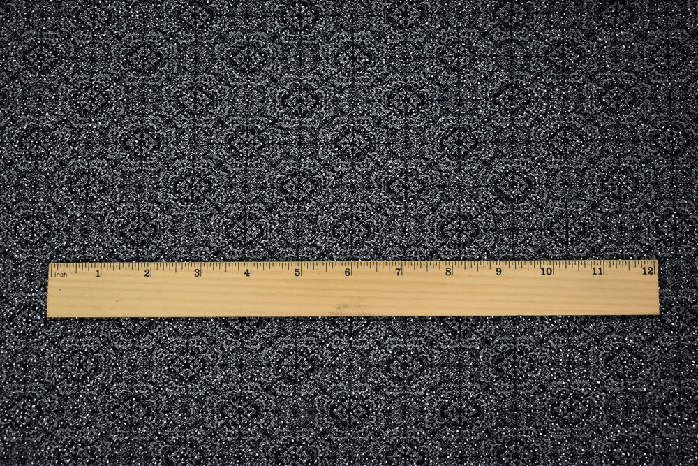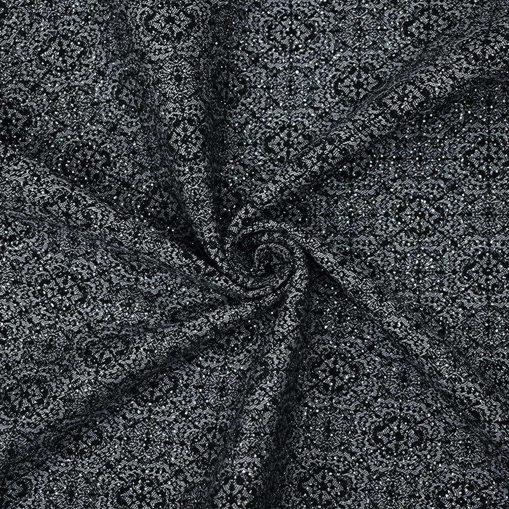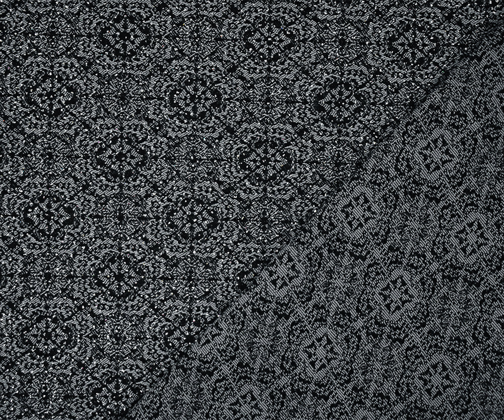 Black-Silver Rayon Blend Stretch Spandex Floral Bengaline Jacquard Fabric