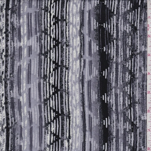 Dove/Black Geo Stripe Rayon Challis Fabric