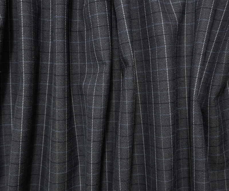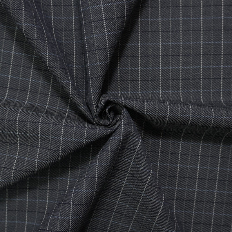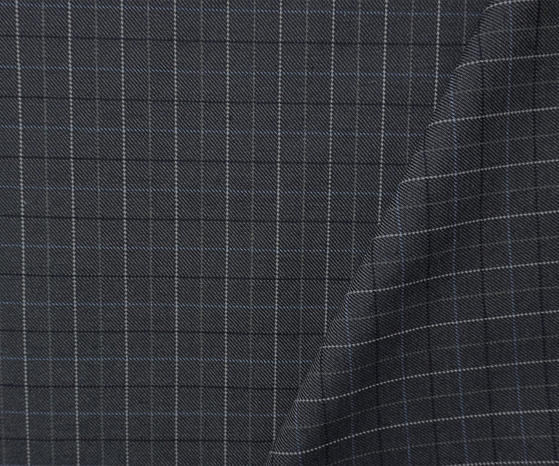 Gray-Blue Wool-Poly Check Twill Suiting Fabric
