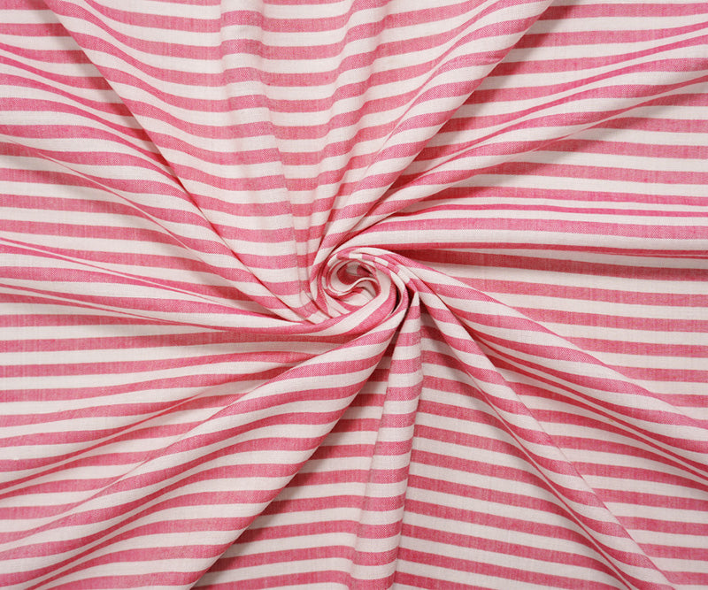 Pink-White Rayon Stripe Challis Woven Fabric