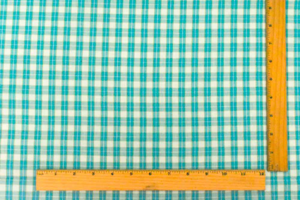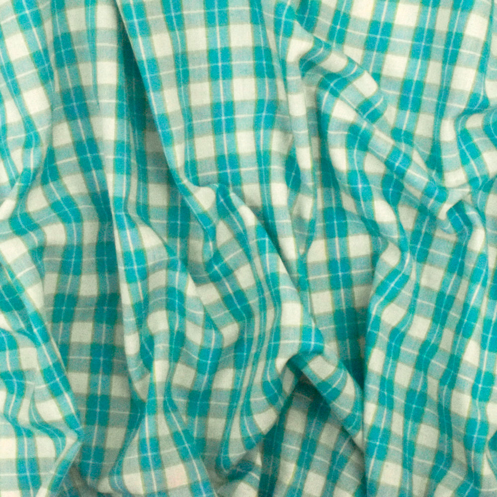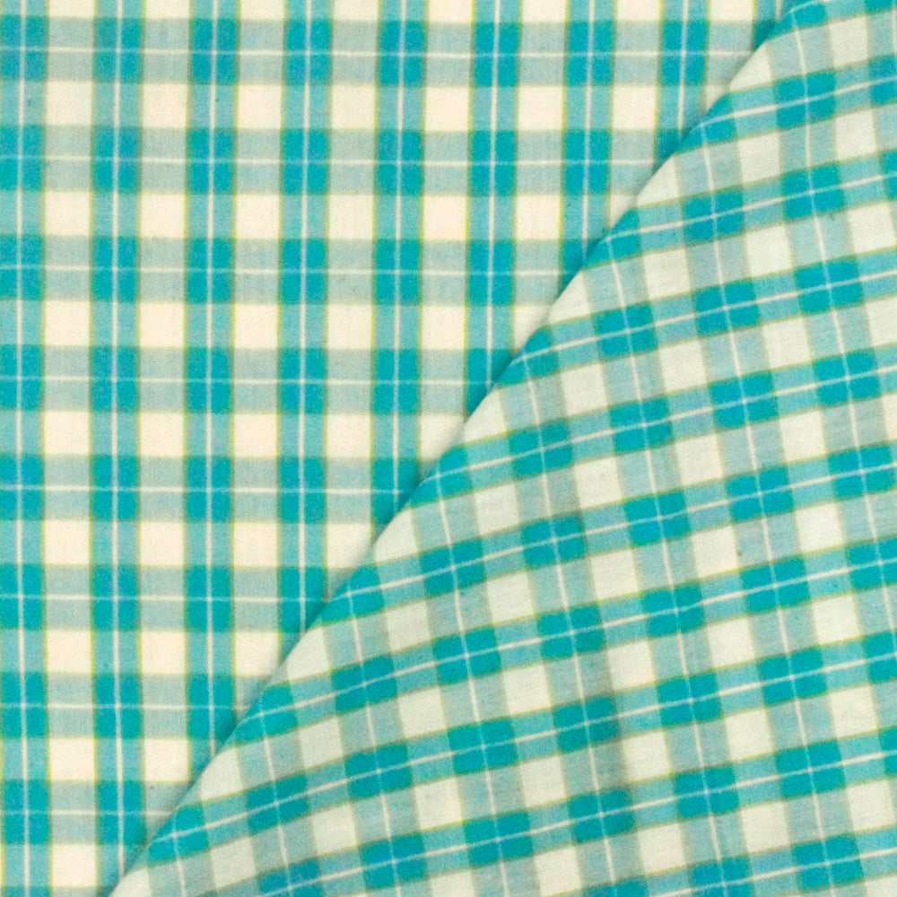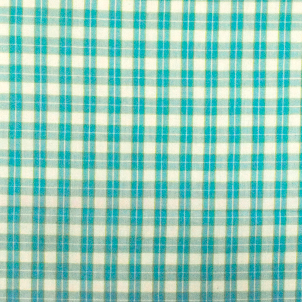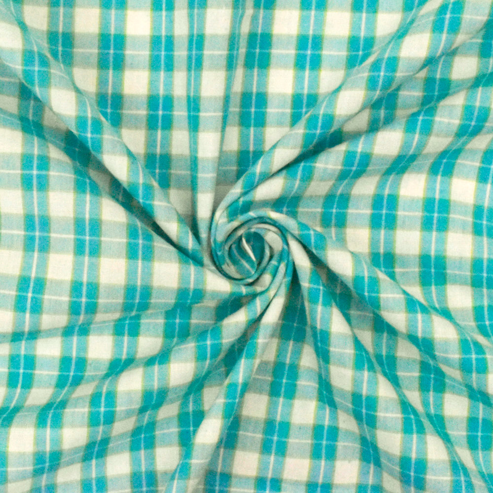 Aqua Teal-White-Green Plaid Cotton Polyester Madras Woven Fabric