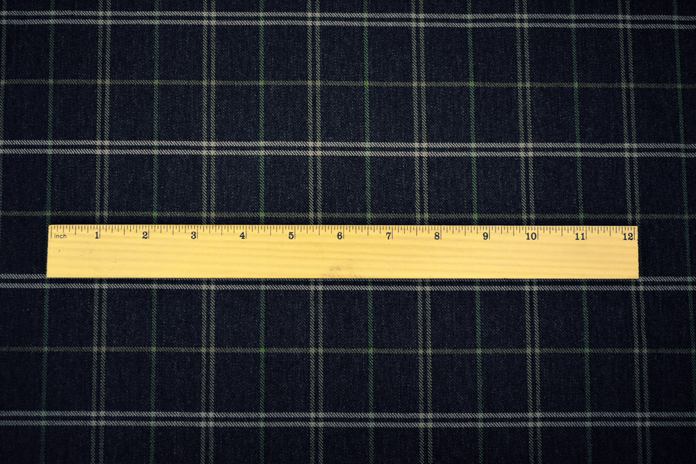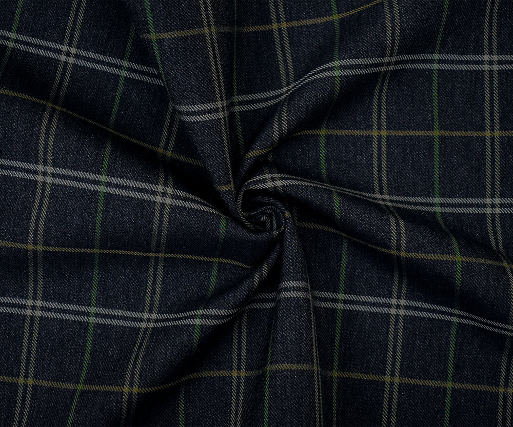 Black-Green-Multi Wool-Polyester Plaid Twill Suiting Woven Fabric
