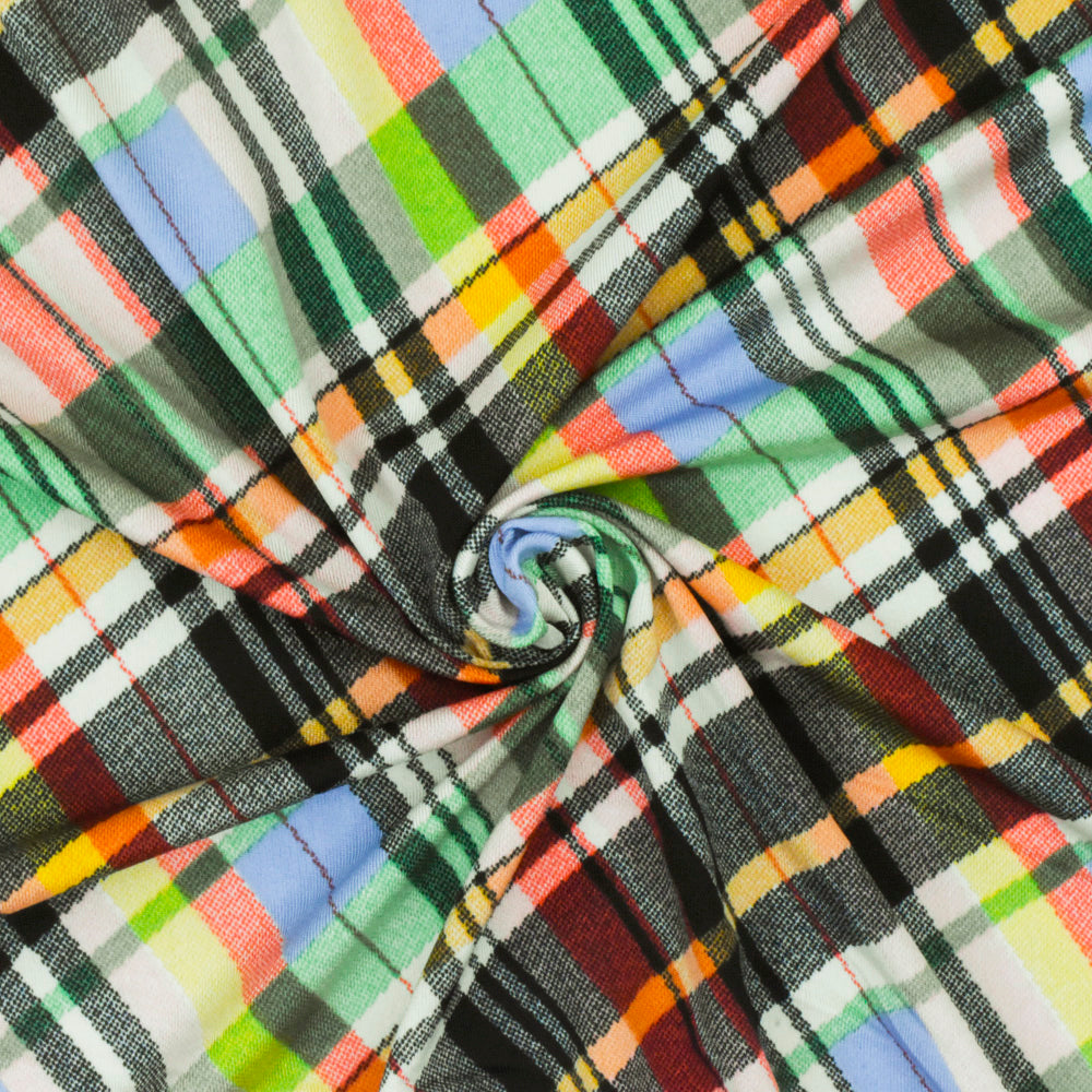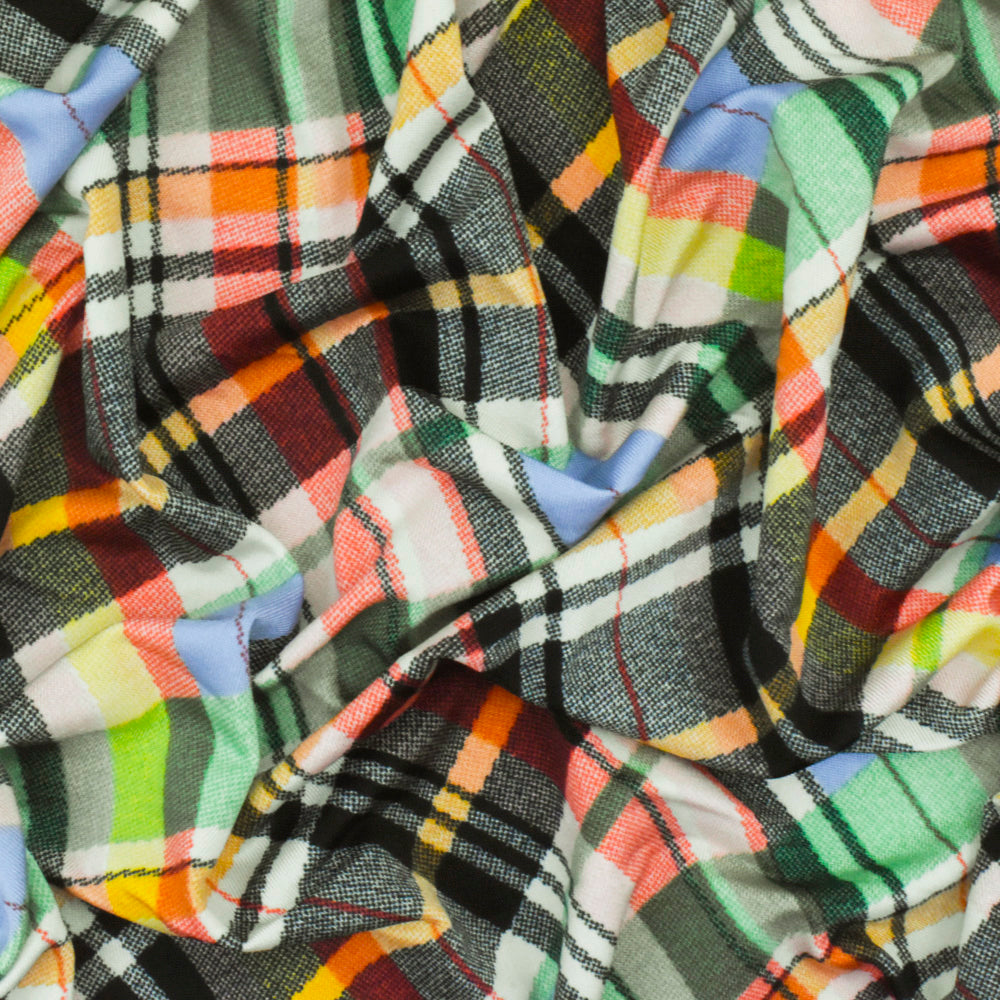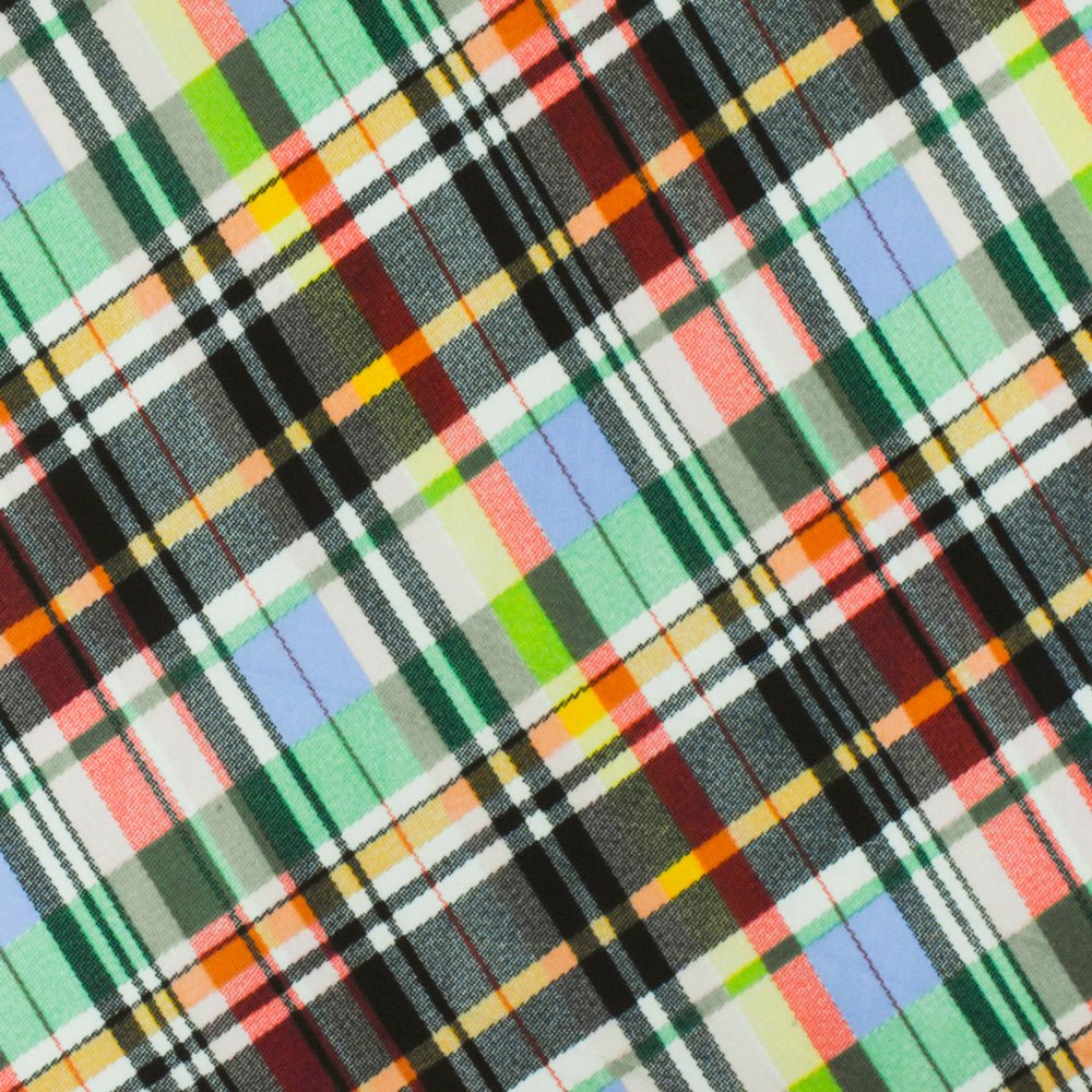 Black-Green-Muti Plaid Printed Stretch Polyspan Jersey Knit Fabric