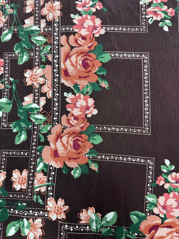 Brown Multi Trellis Poly Print High Crepe Fabric