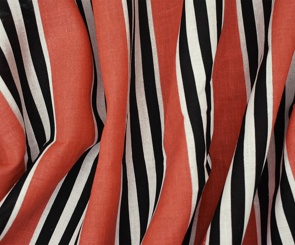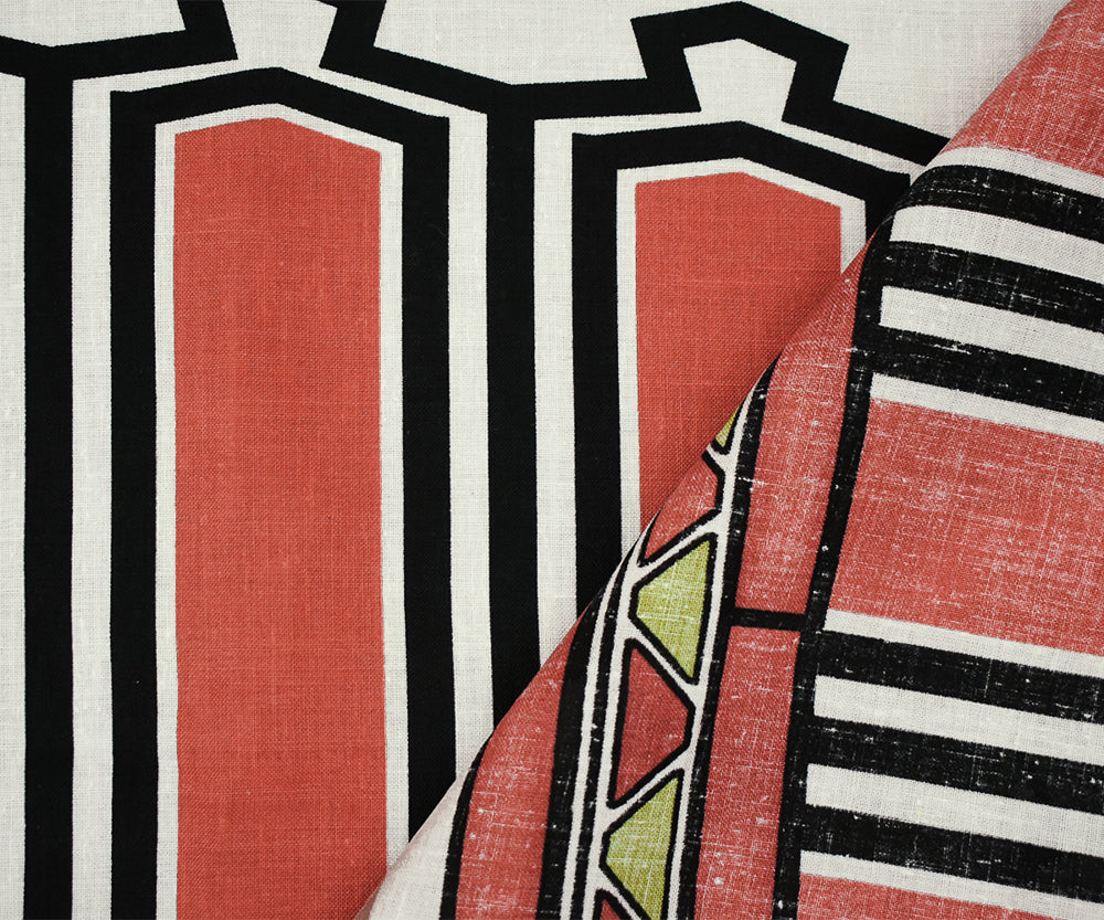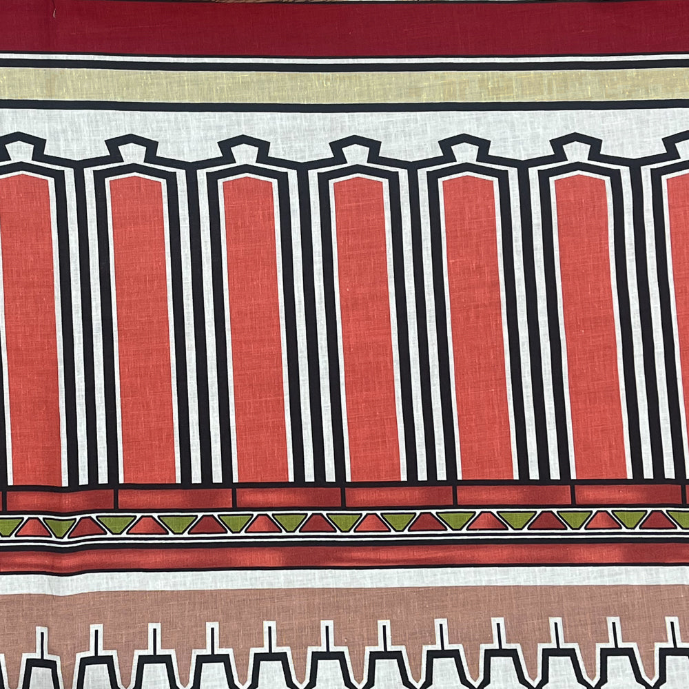 Coral Red-Black-Multi Aztec Pattern Printed Linen Woven Fabric