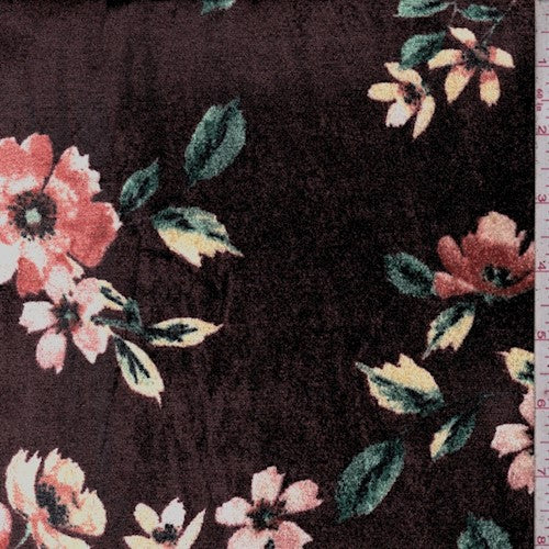 Deep Brown/Multi Floral Printed Stretch Velvet Knit Fabric