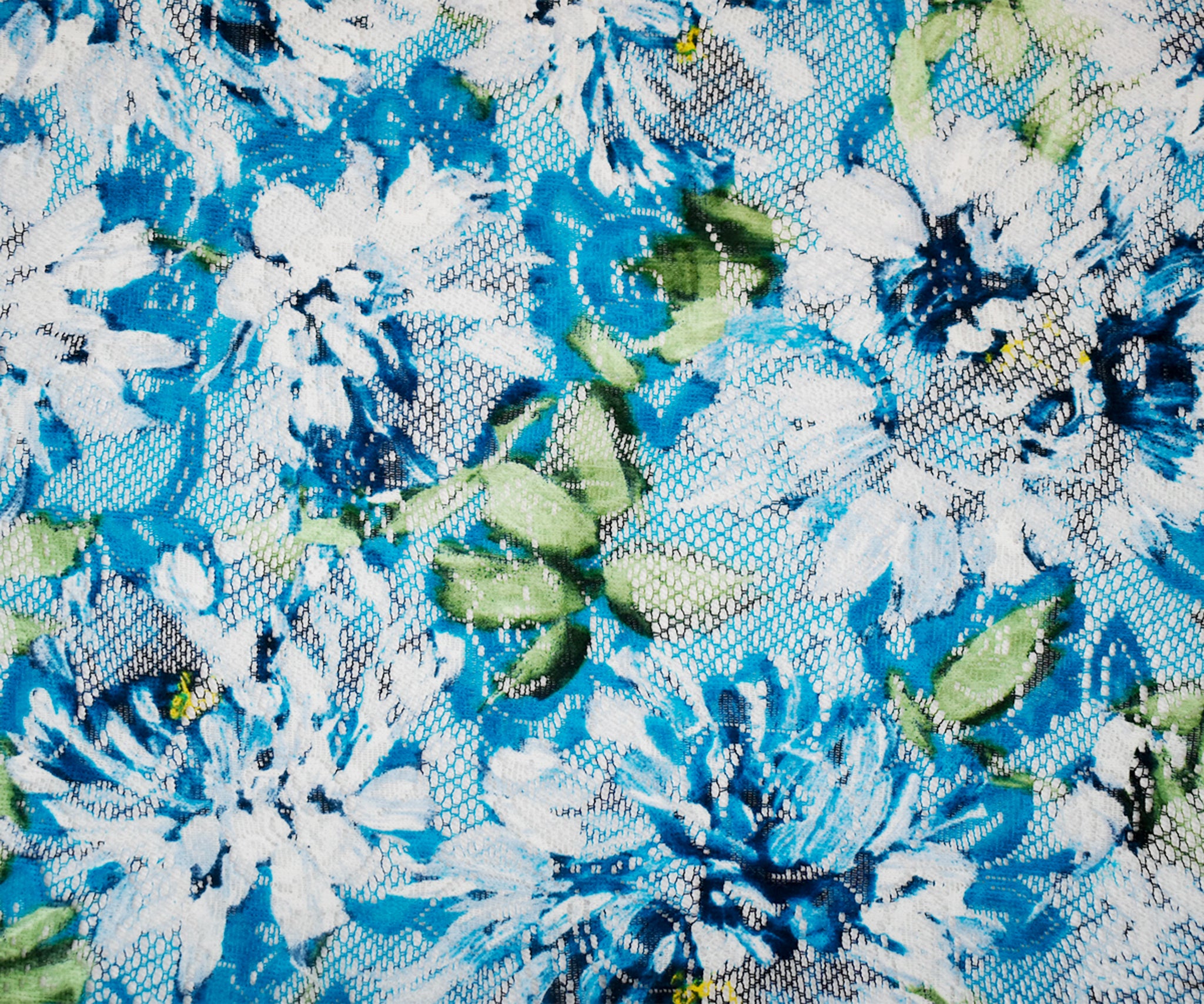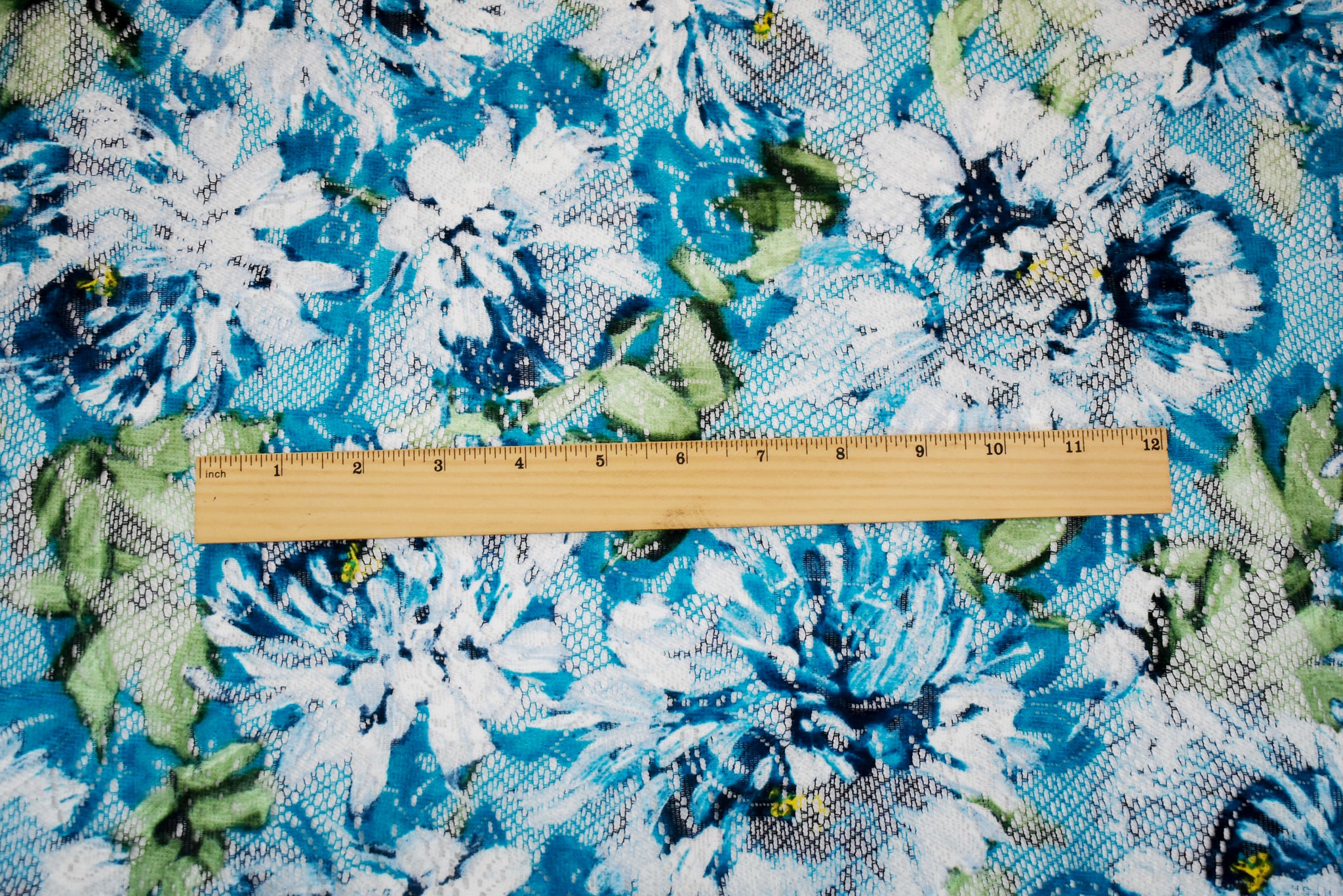 Deep Teal-Multi Poly Rayon Floral Printed Crochet Lace Knit Fabric