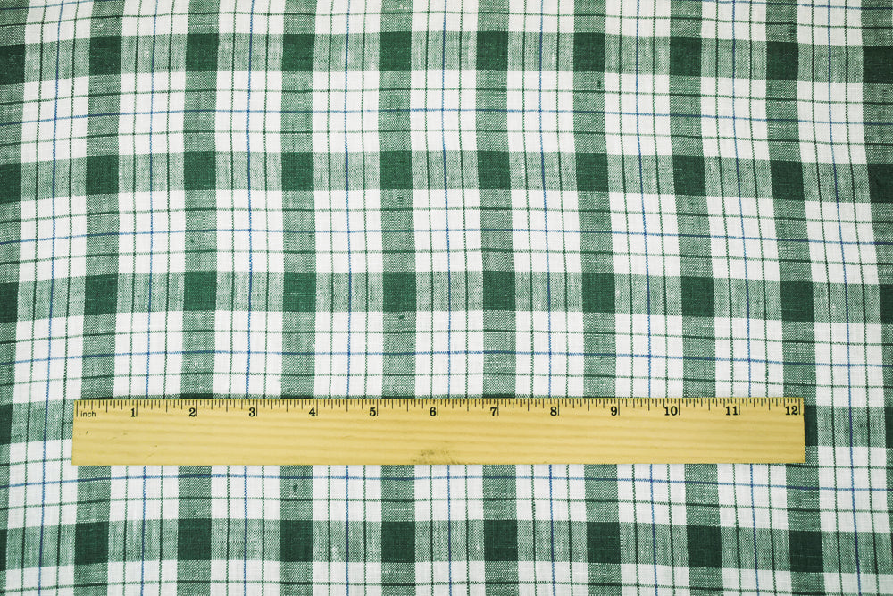 Green-Blue-Moygashel Bryson Washed Plaid Irish Linen Woven Fabric