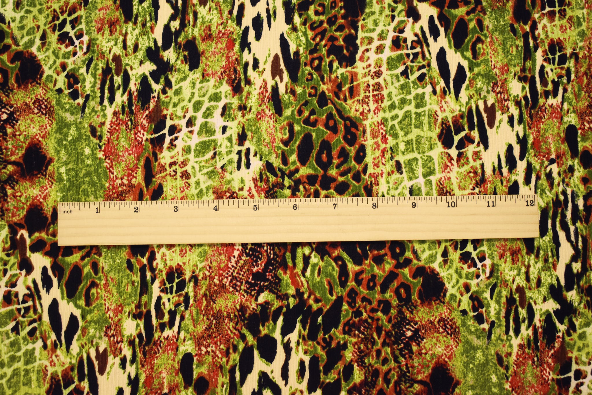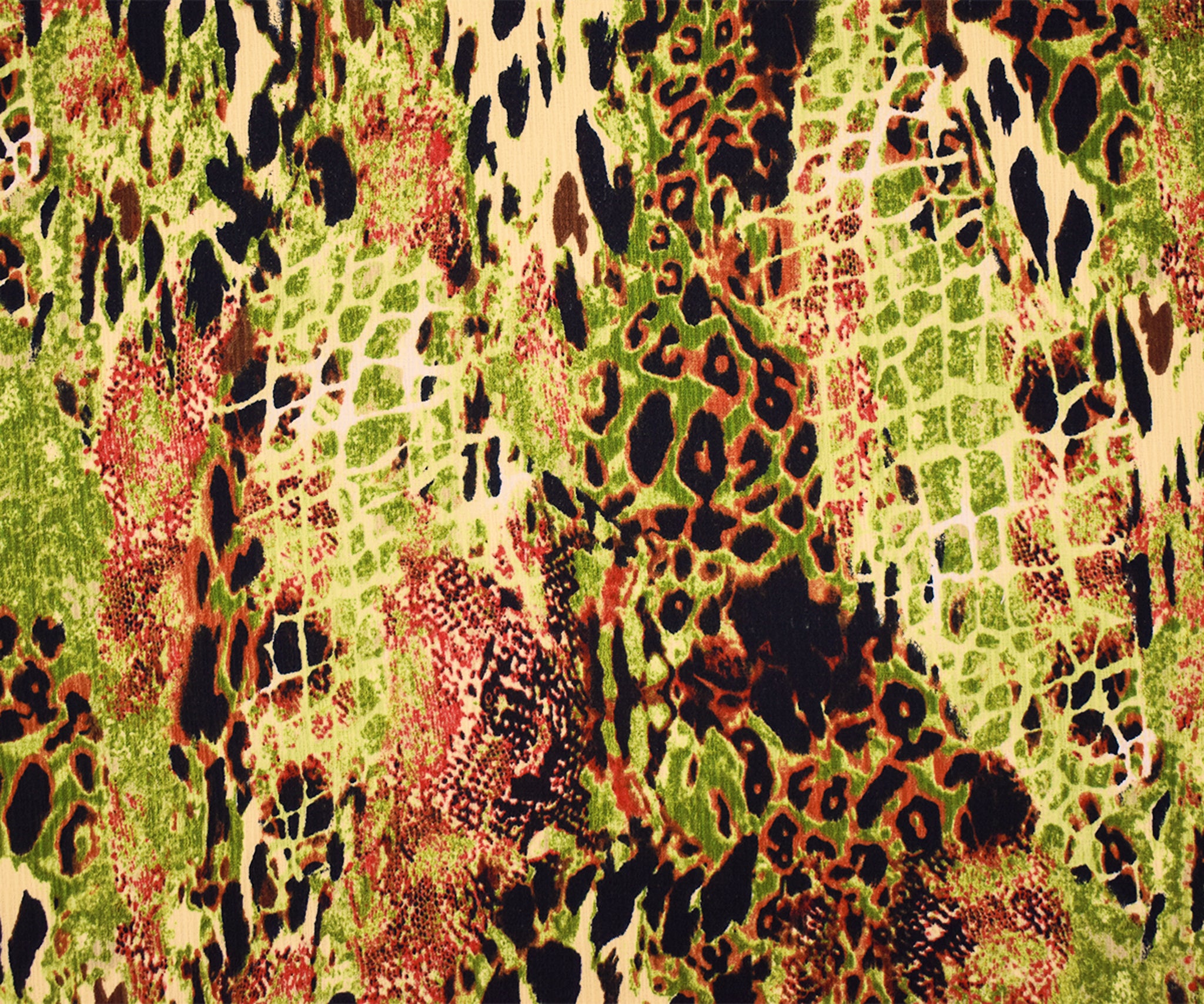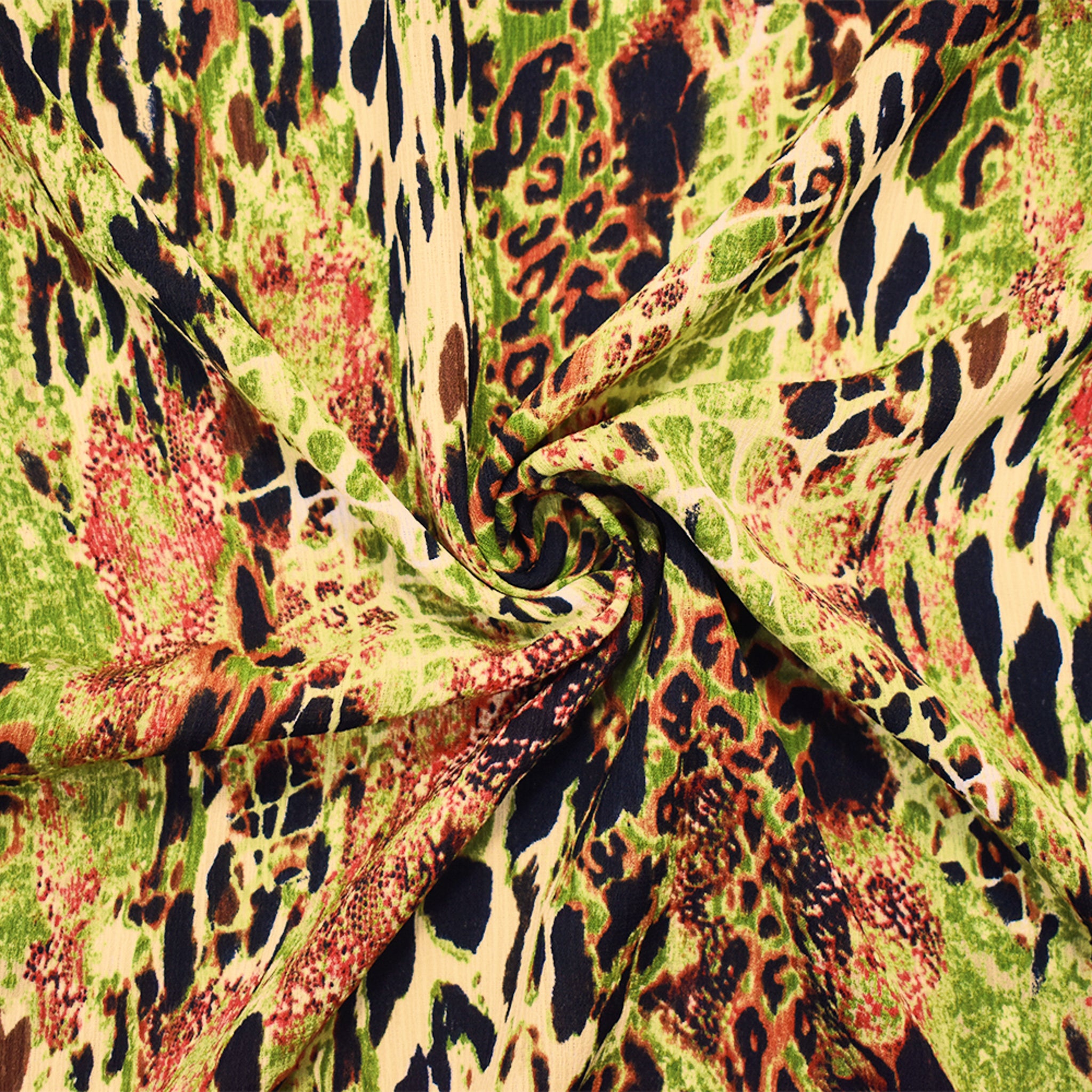 Green-Brown-Multi Poly Abstract Animal Printed Textured Crepe Woven Fabric