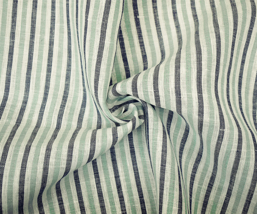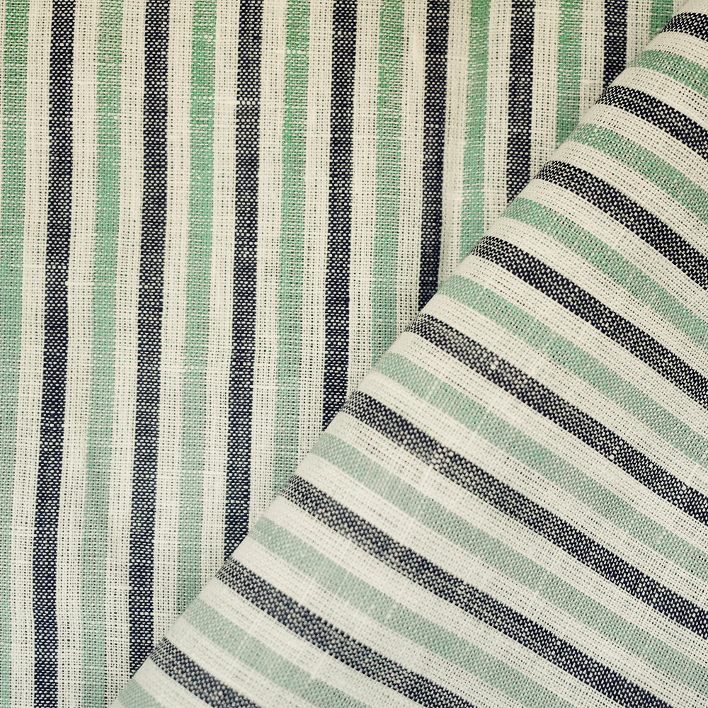 Green-Gray-White Spence Bryson Striped Irish Linen Woven Fabric
