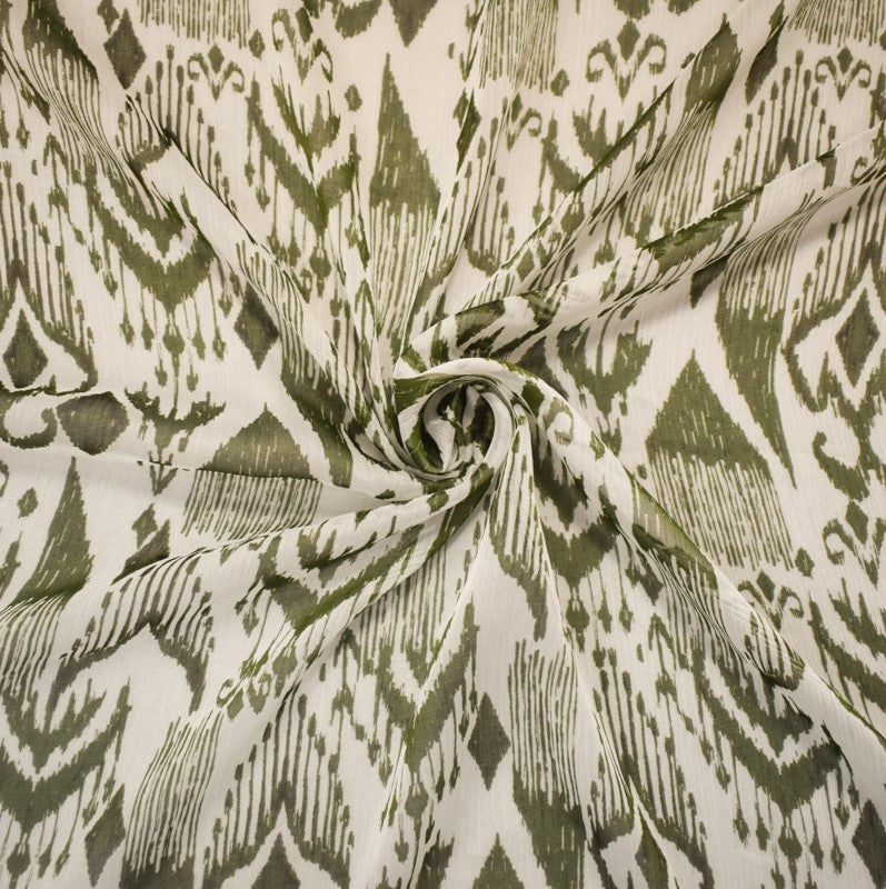 Green-White Poly Aztec Printed Crinkle Yoryu Chiffon Woven Fabric