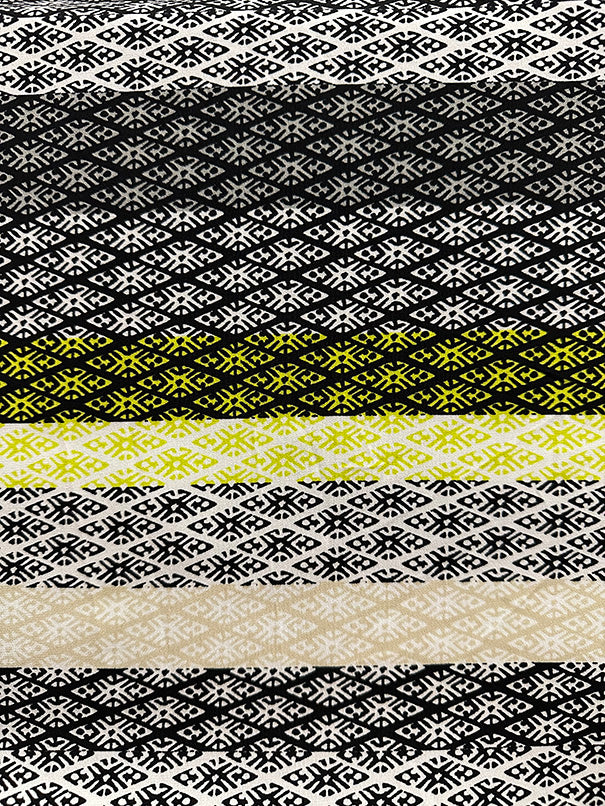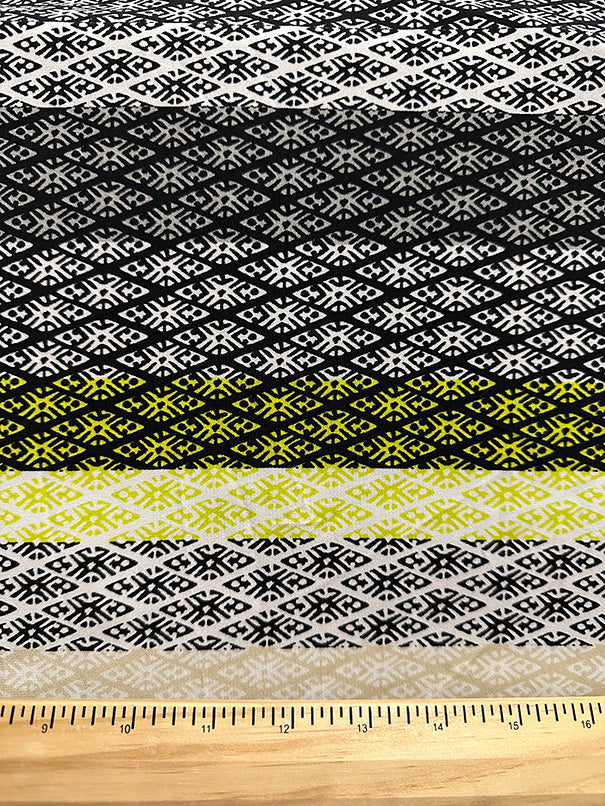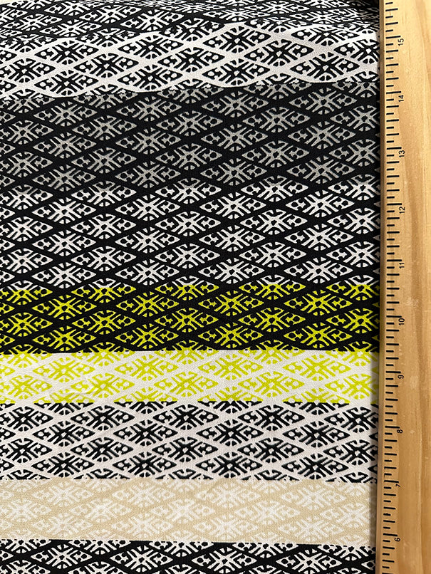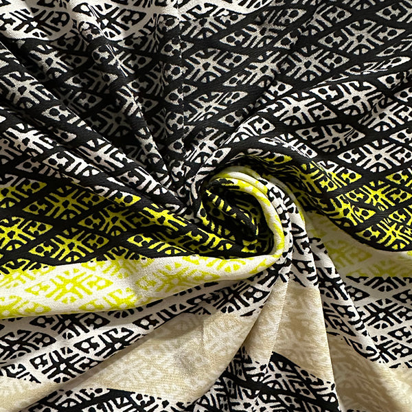 -Lime Green, Black, White, Gray, & Beige Geometric Print ITY Jersey Knit Fabric