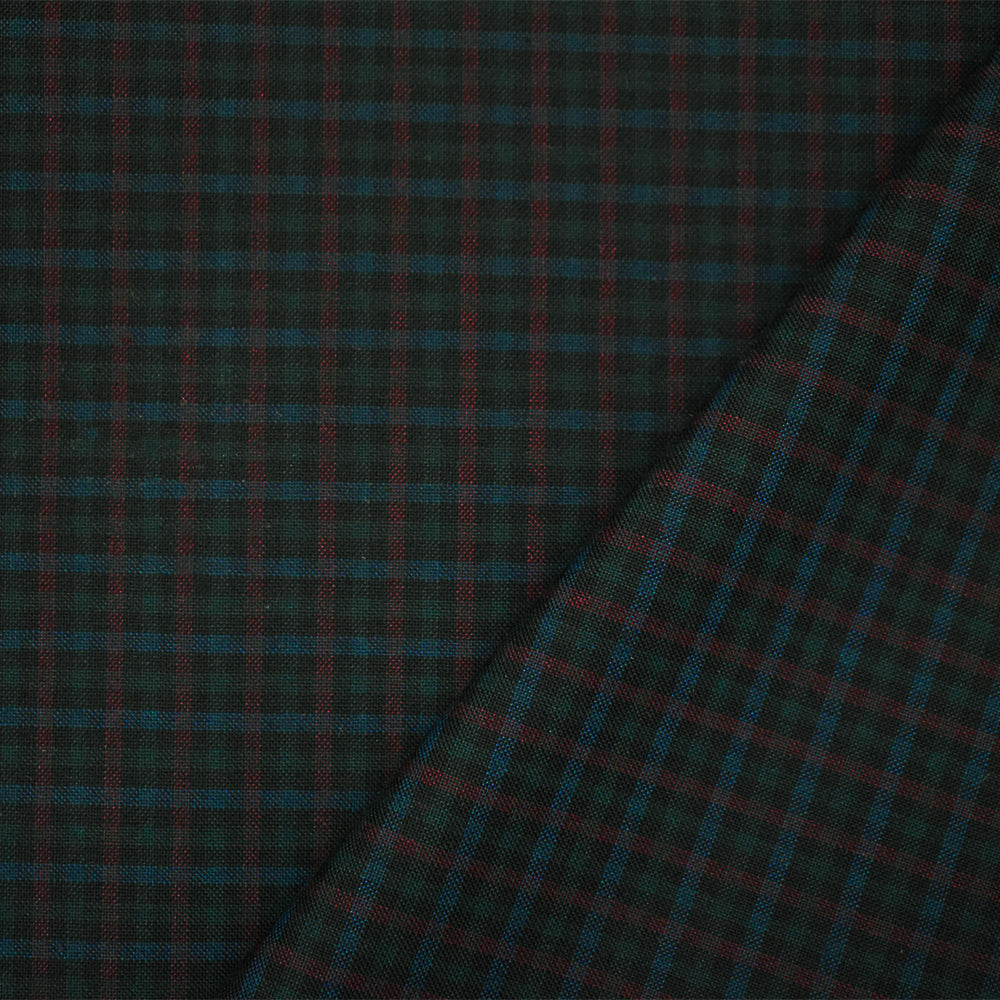 Maroon Brown-Black-Multi Poly-Wool Plaid Shirting Woven Fabric
