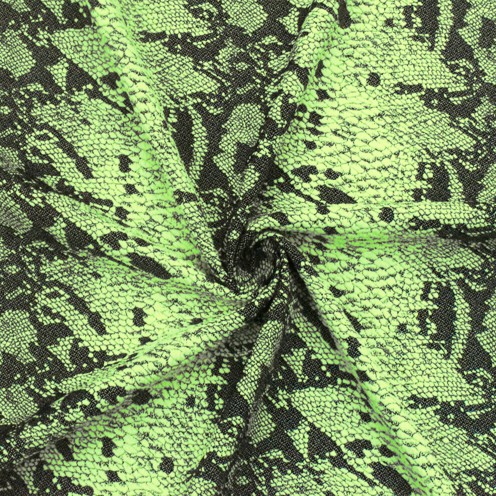 Neon Green-Black Famous Maker Stretch Reptile Jacquard Yoga Knit Fabric
