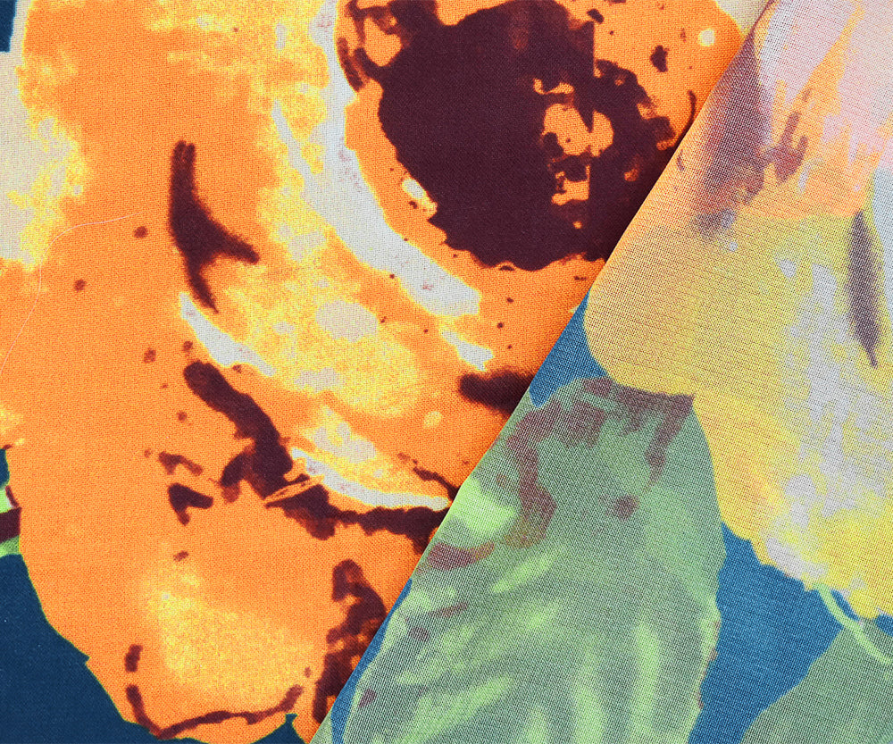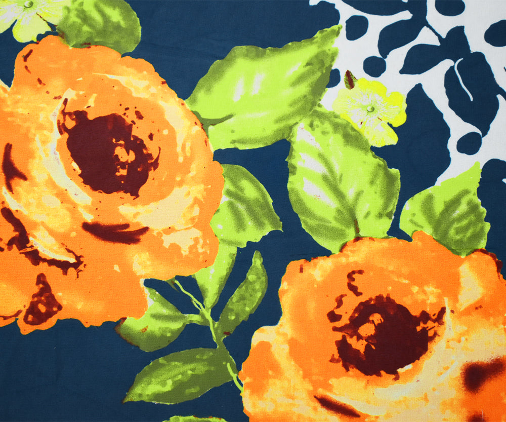 Orange-Blue-Multi Floral Dots Printed Poly Chiffon Woven Fabric