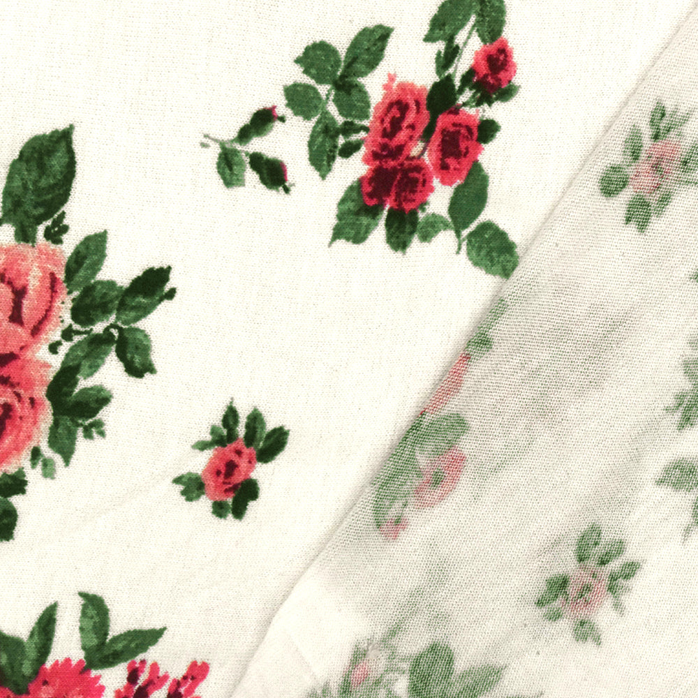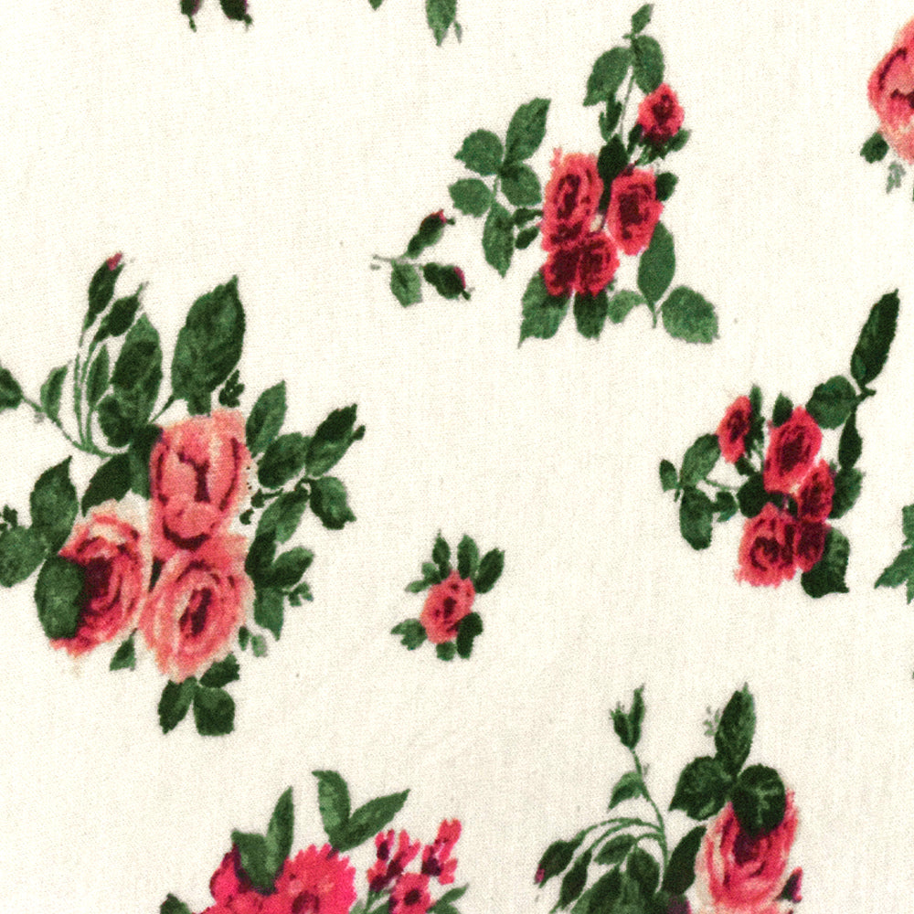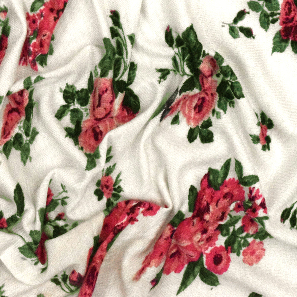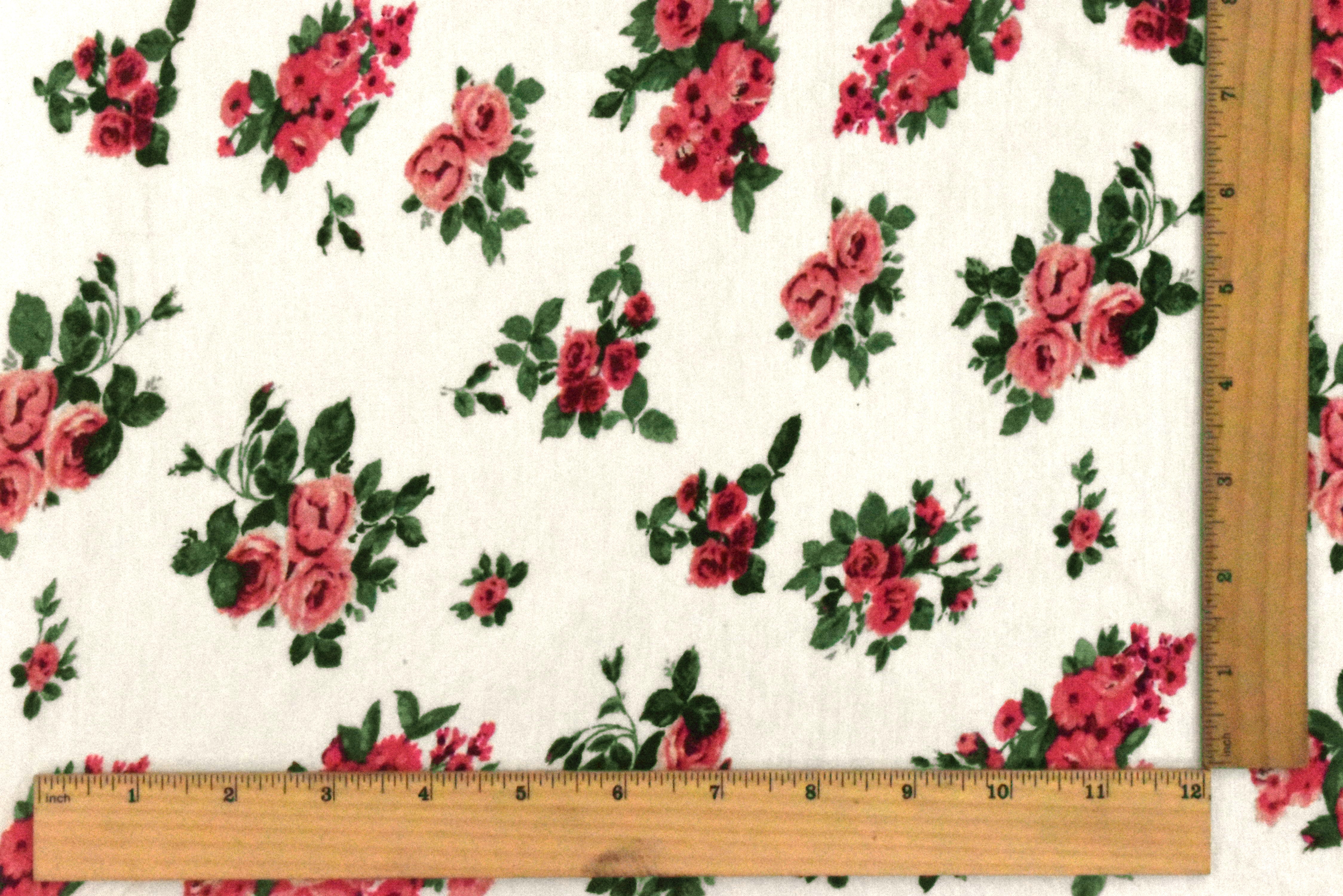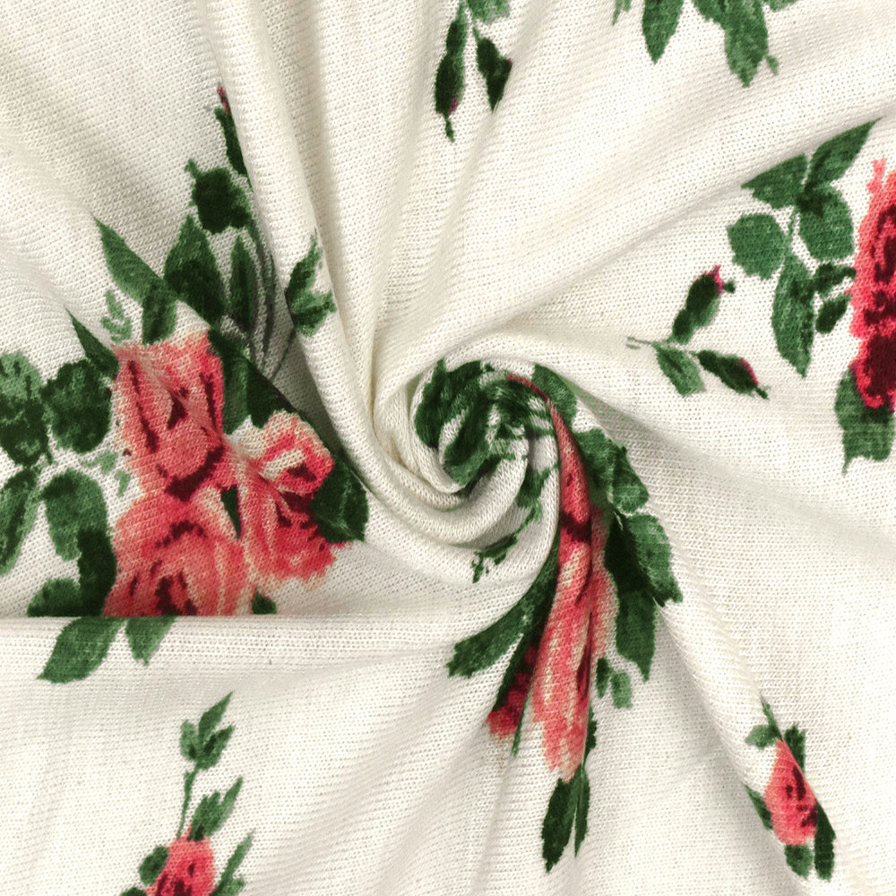 Pink-Green-Ivory Floral Printed Slub Rayon Stretch Jersey Knit Fabric