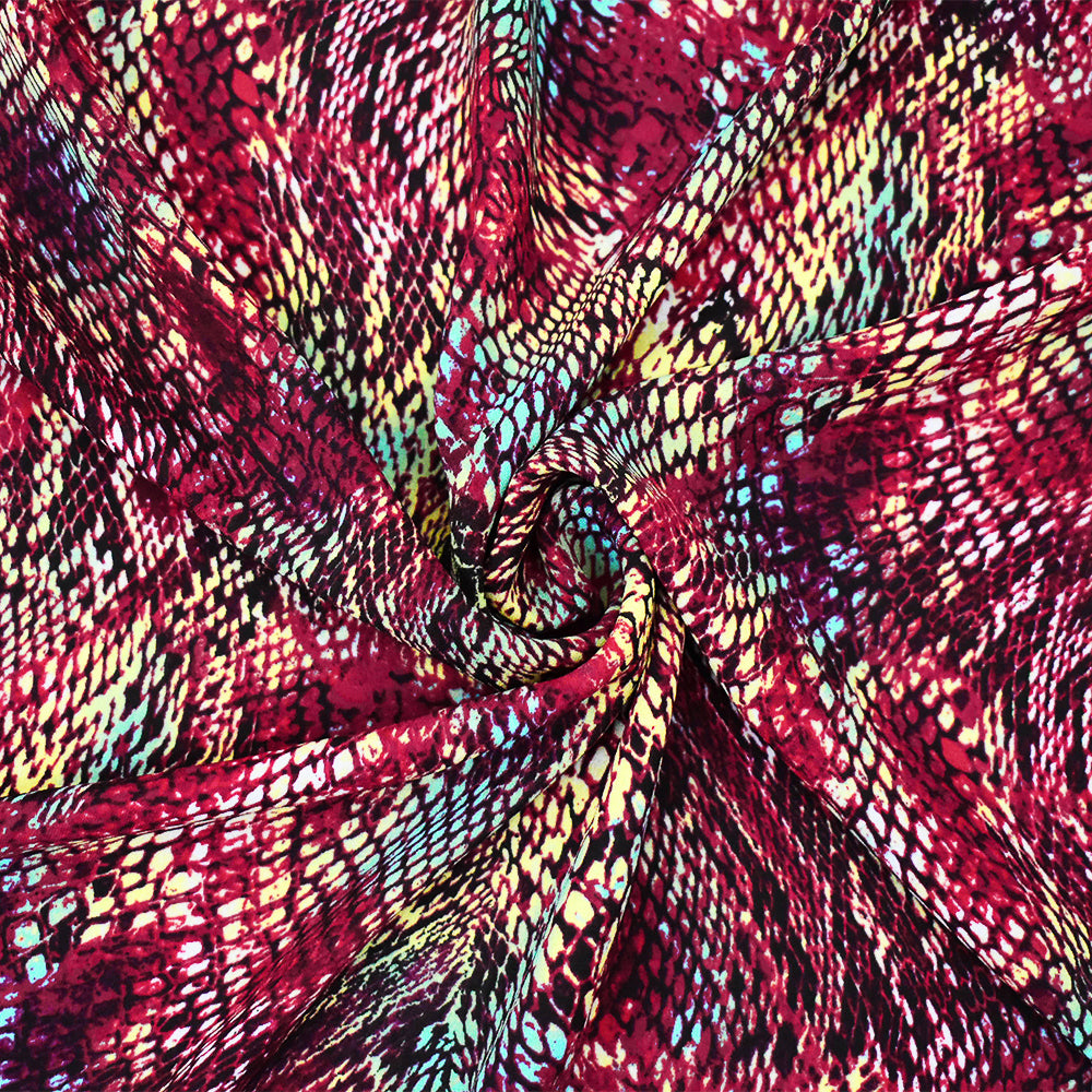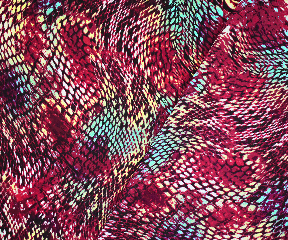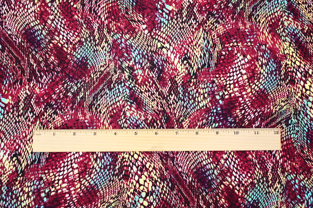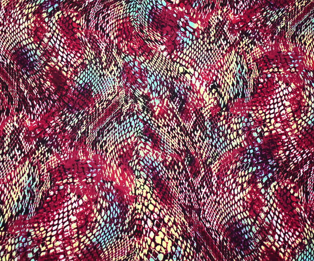 Red-Yellow-Multi Reptile Skin Printed Poly Crepe Momie Georgette Fabric