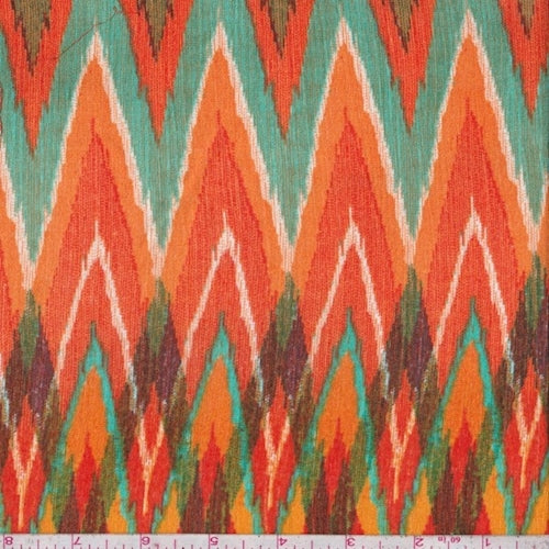 Tangerine/Jade Flamestitch Crinkled Gauze Fabric