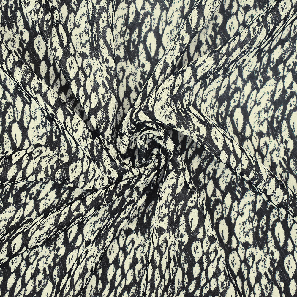 Black-Ivory Abstract Pattern Printed Poly Chiffon Woven Fabric