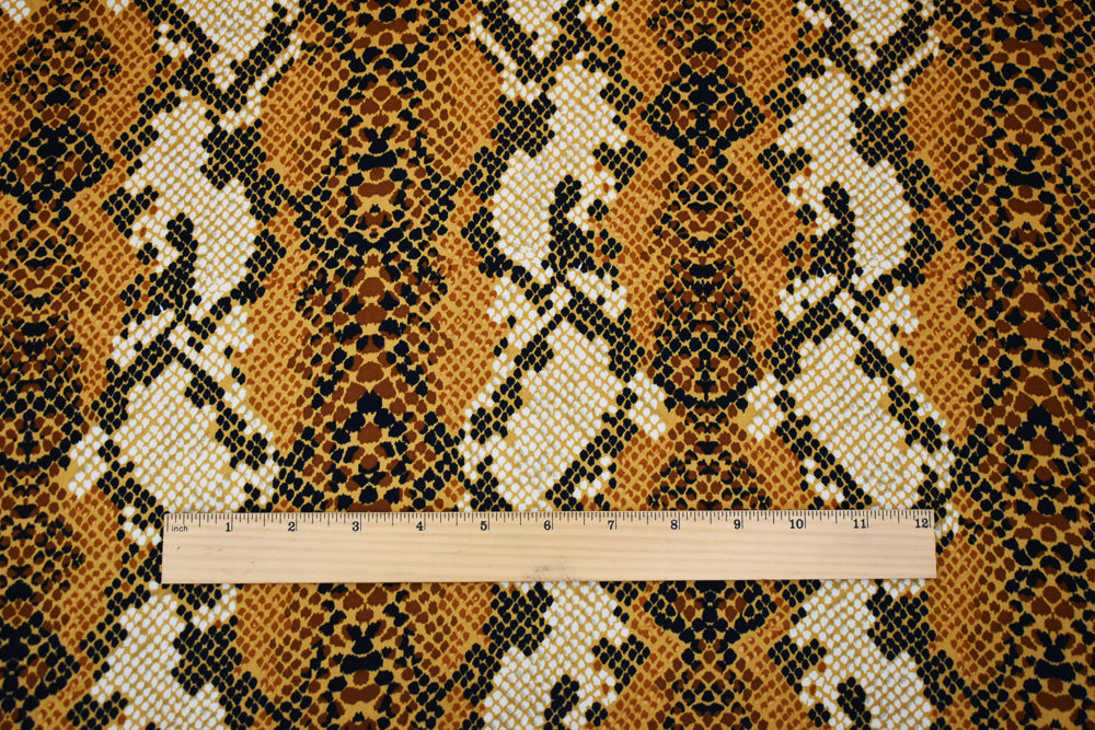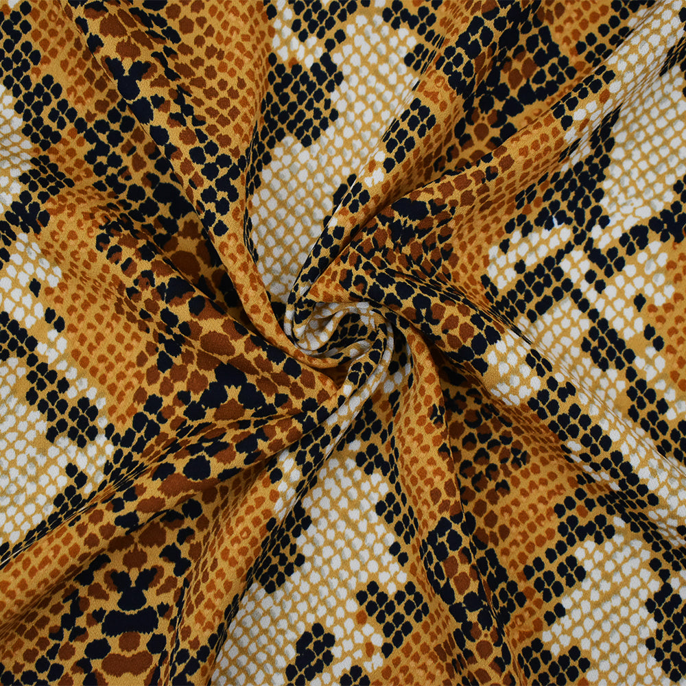 Brown-Tan-Multi Reptile Skin Print Poly Crepe Momie Georgette Woven Fabric