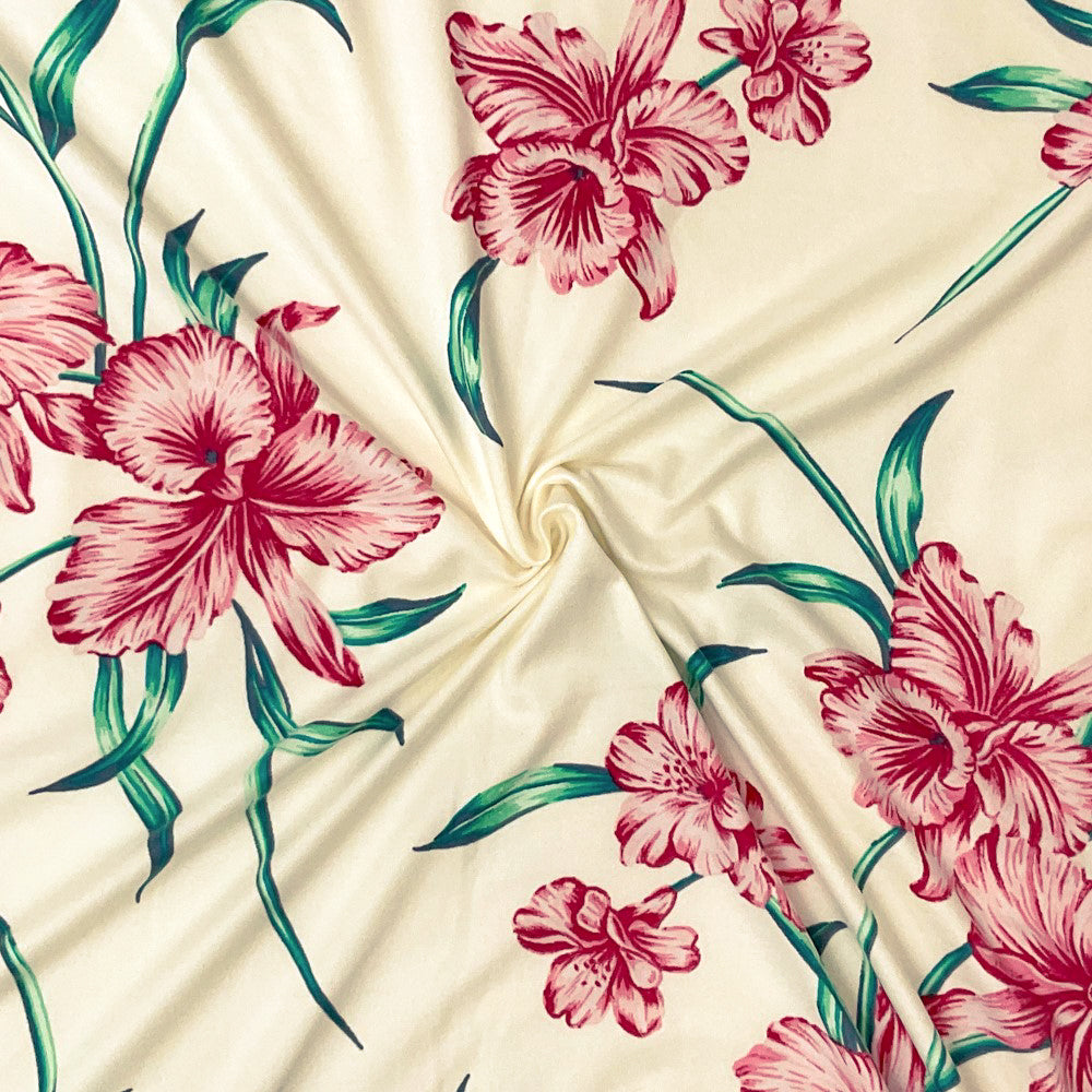 Ivory-Multi Poly Stretch Spandex Floral Print DB Jersey Knit Fabric
