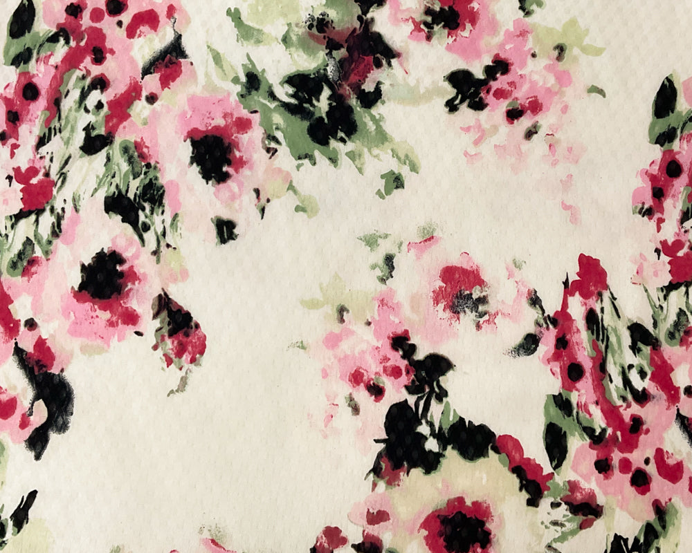 Ivory-Pink-Multi Poly Floral Printed Ogee Dobby Chiffon Woven Fabric