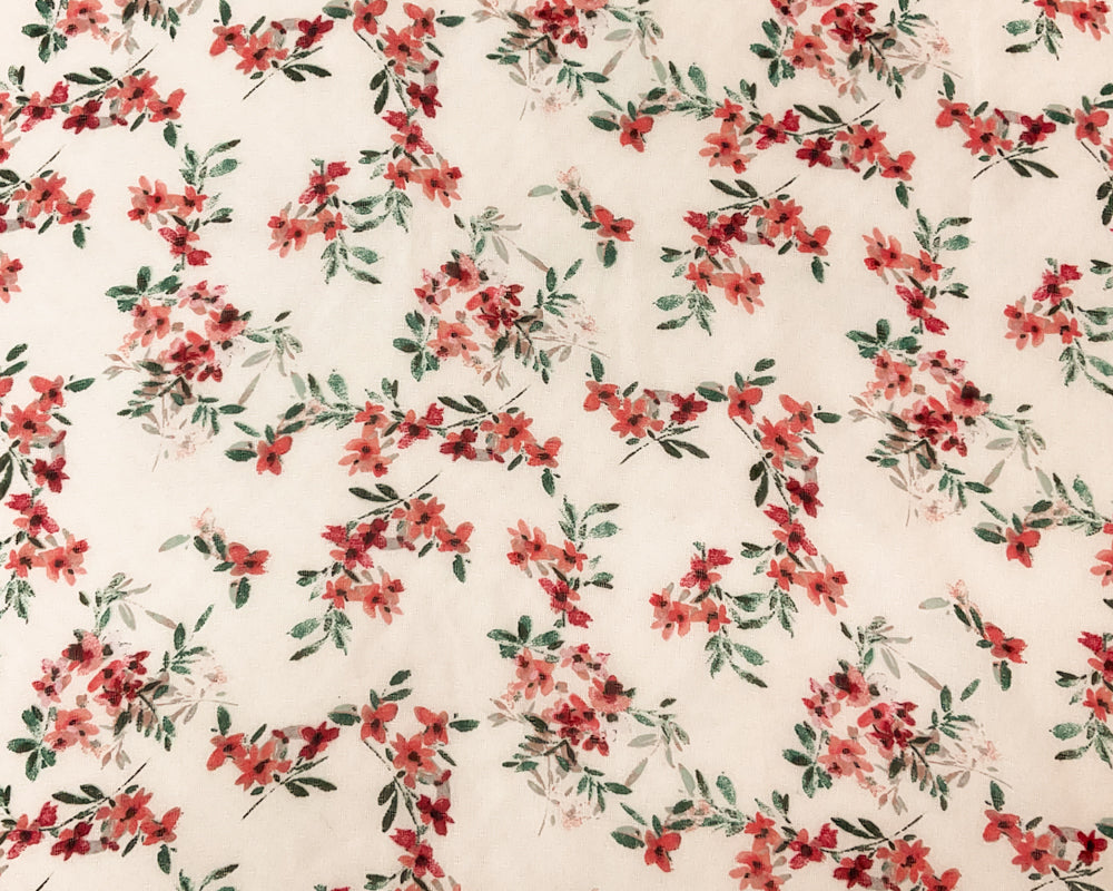 Ivory-Red-Multi Poly Floral Printed Dobby Chiffon Woven Fabric