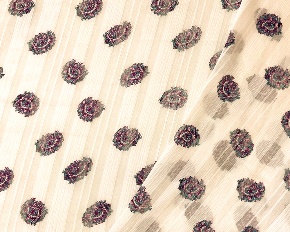 Off-White-Multi Paisley Print Stripe Satin Chiffon Woven Fabric