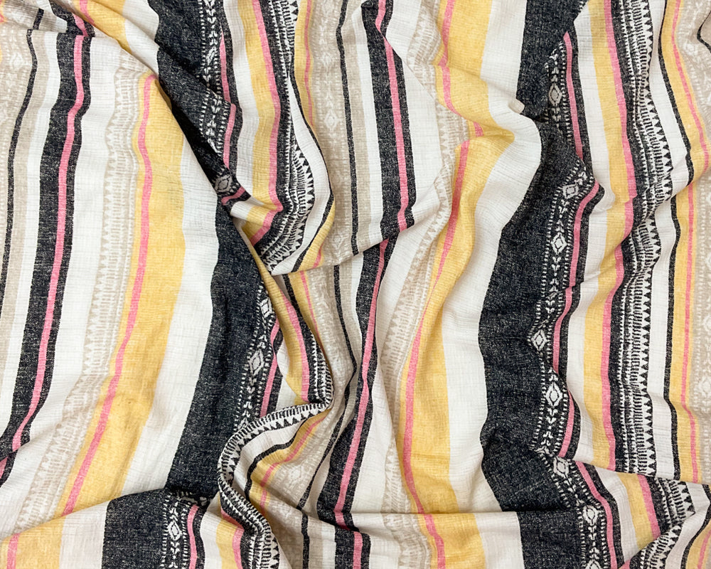 Yellow-Beige-Multi Poly Stretch Stripe Printed Slub Knit Fabric