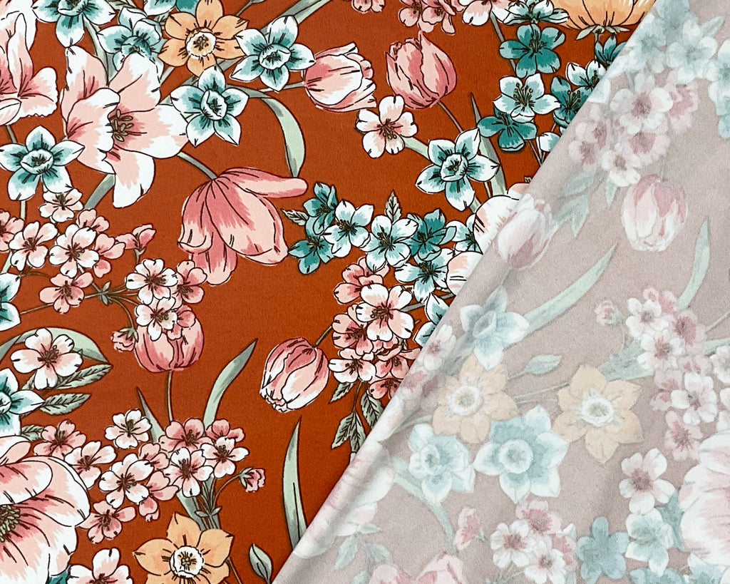 Brown-Multi Poly Stretch Spandex Floral Print DB Jersey Knit Fabric