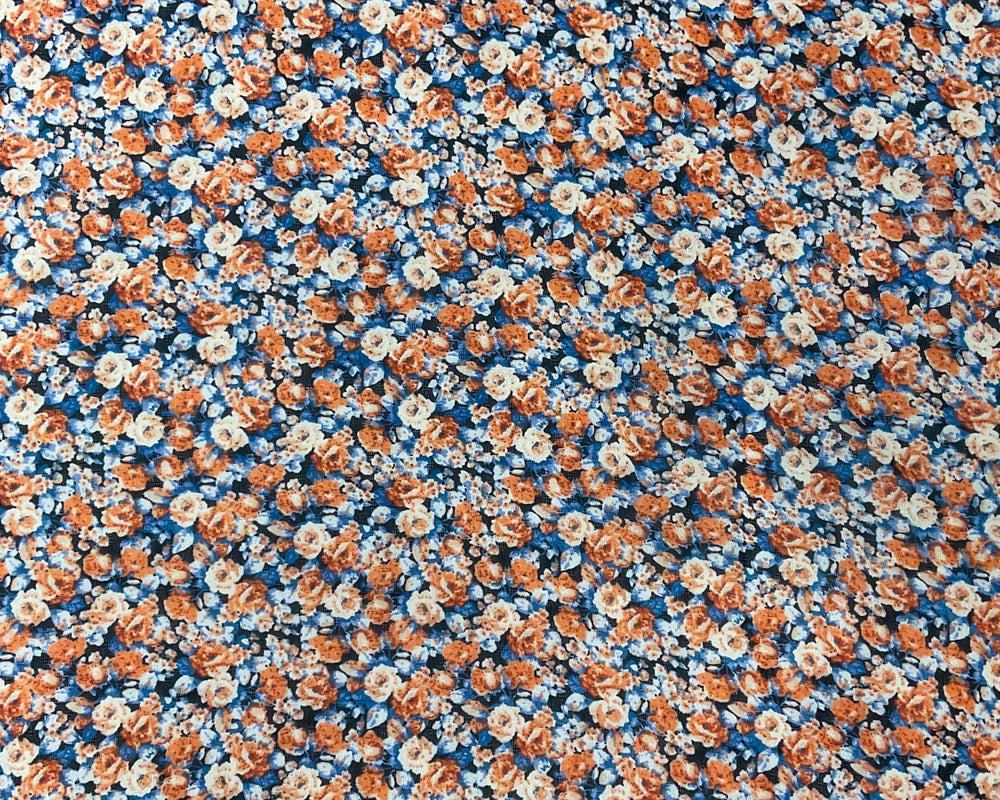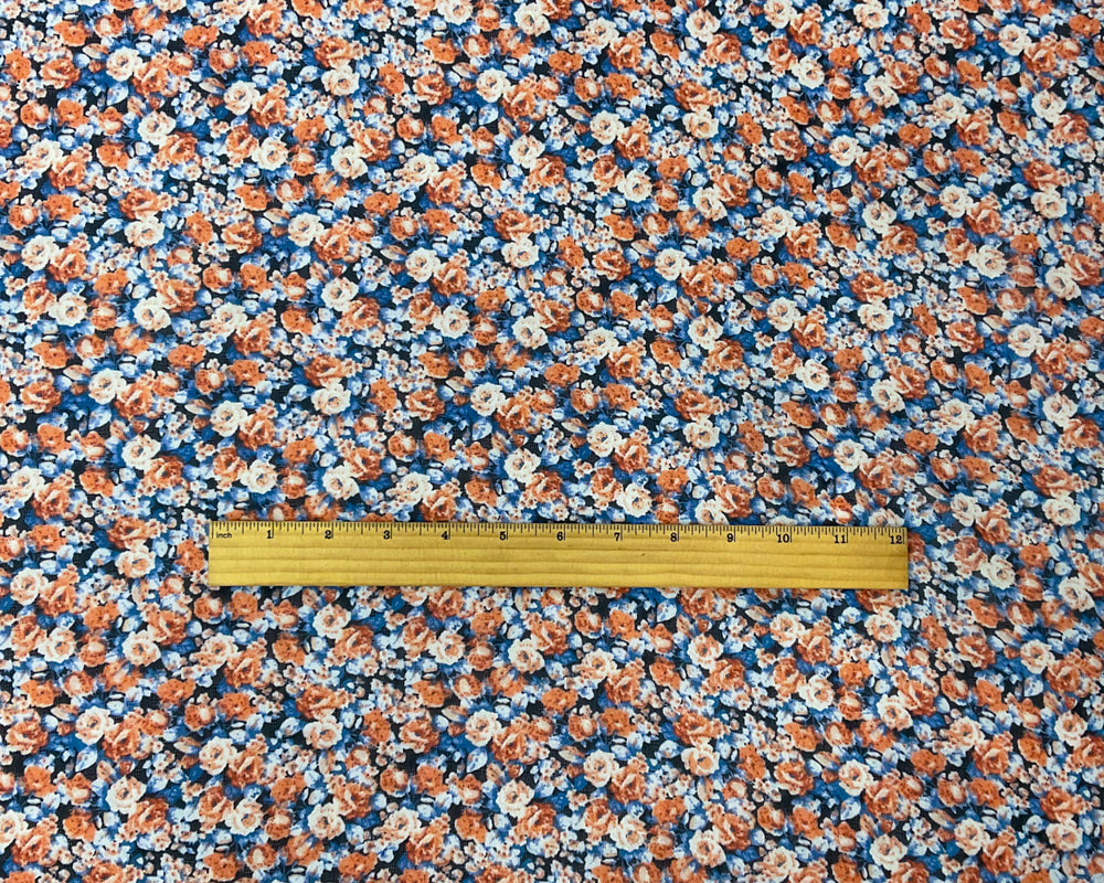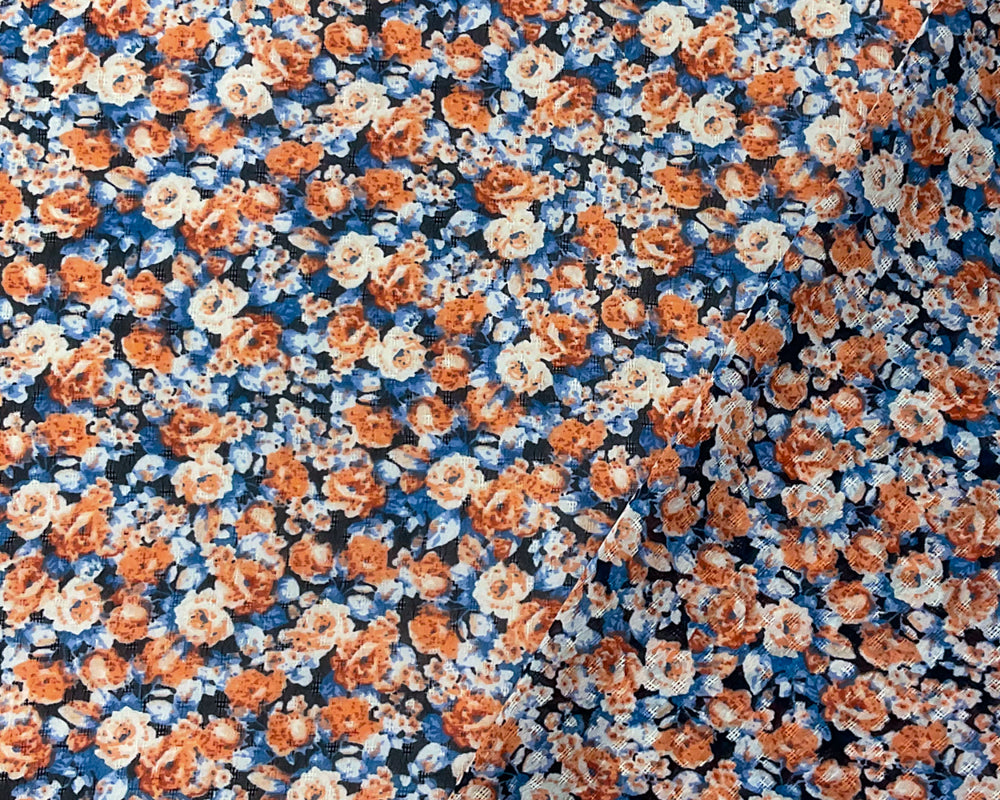-Orange-Blue-Multi Poly Floral Printed Dobby Chiffon Woven Fabric