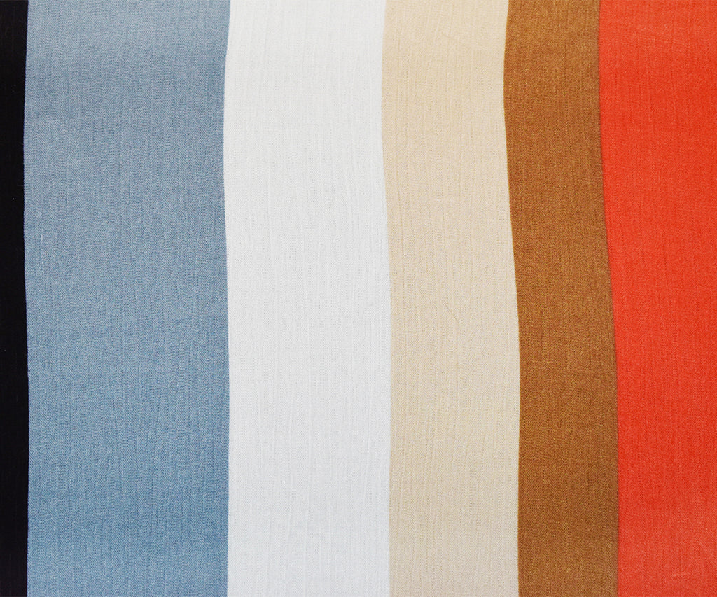 Orange-Gray-Multi Cotton Stripe Printed Crinkled Gauze Woven Fabric