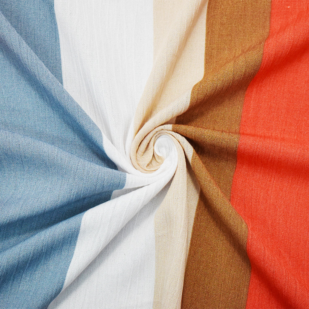 -100% Cotton crinkled gauze woven fabric printed with a stripe pattern