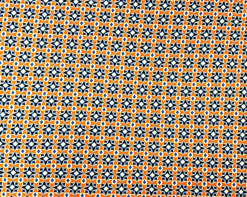 -Orange-Multi Poly Spandex Stretch Flower-Tile Print Double Brush Jersey Knit Fabric