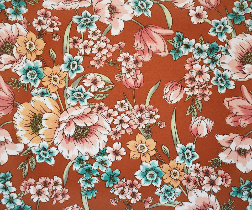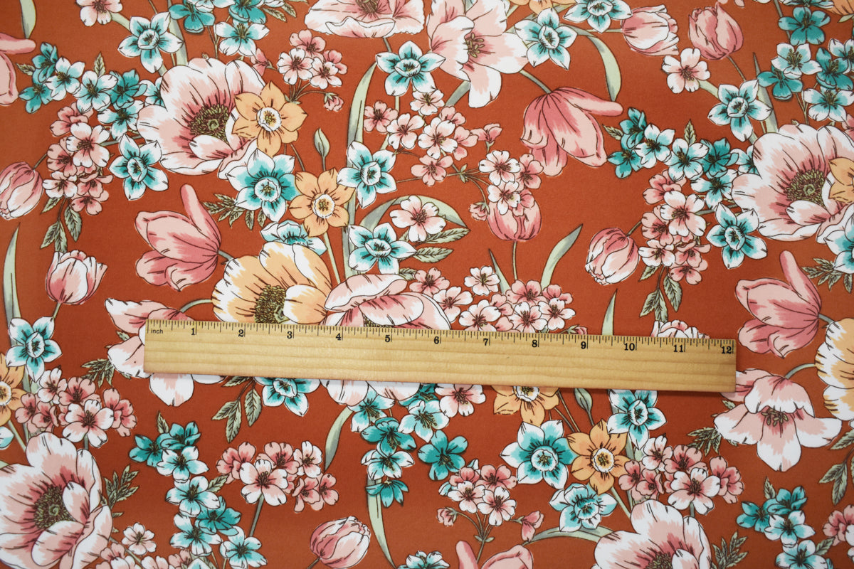 Orange-Multi Poly Stretch Floral Print DB Jersey Knit Fabric