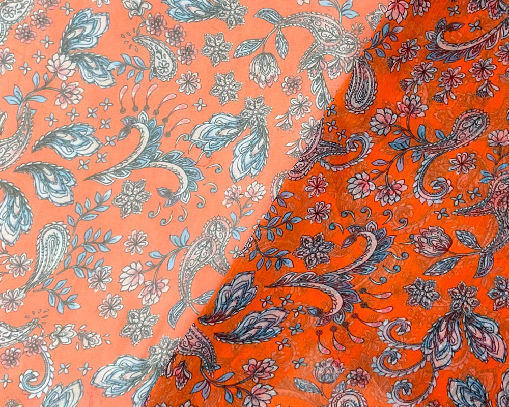 Red Orange-Multi Poly Floral Printed Yoryu Chiffon Woven Fabric
