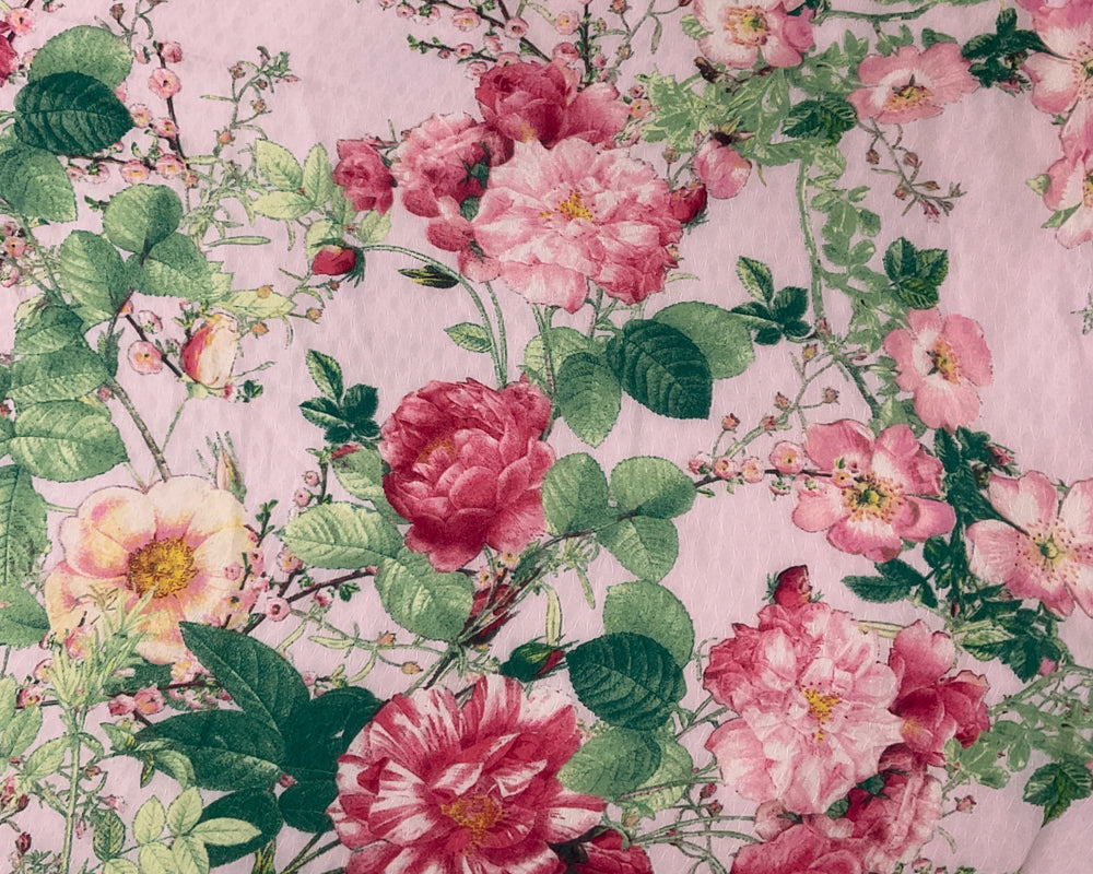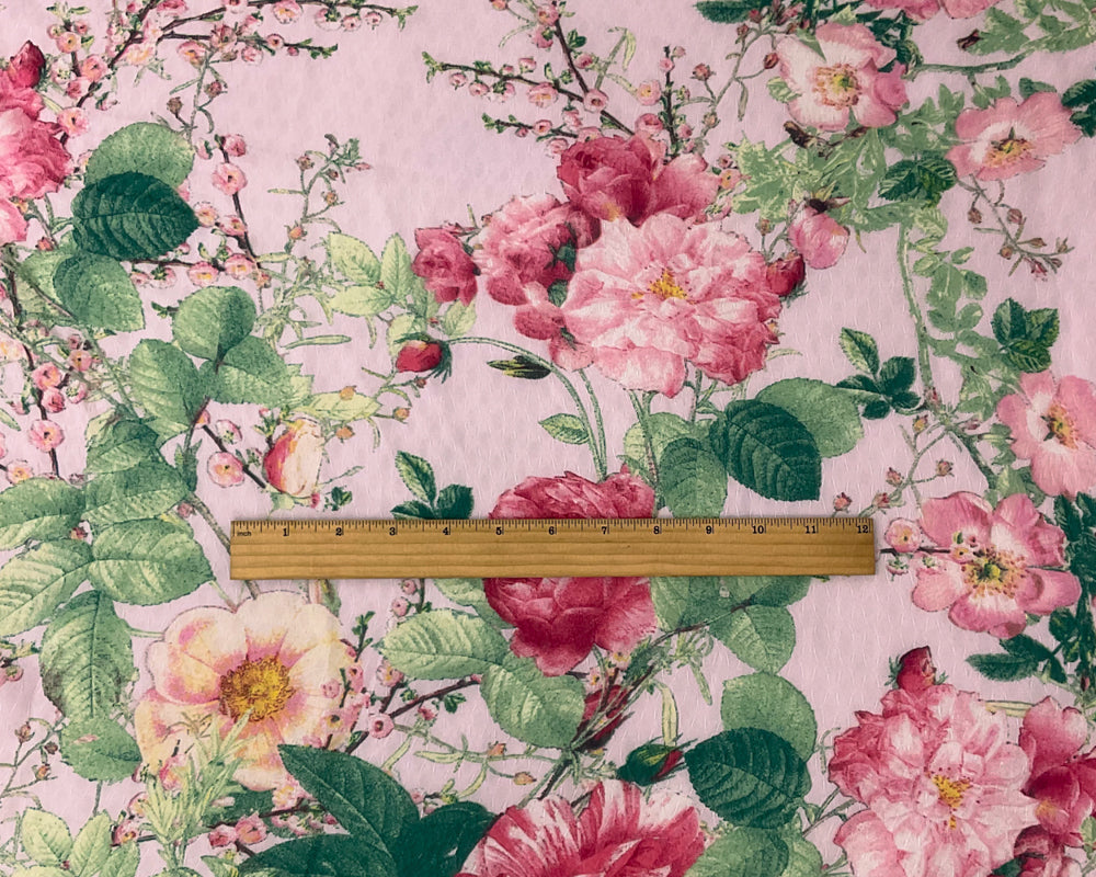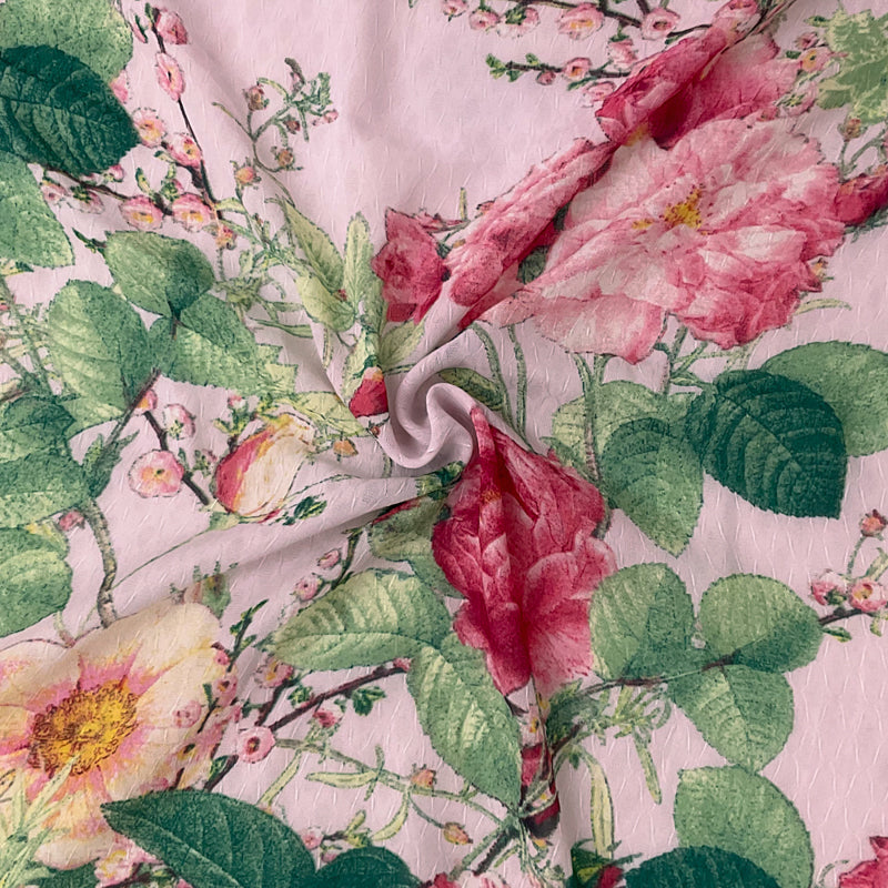 Pink-Multi Poly Floral Print Ogee Shape Dobby Chiffon Woven Fabric